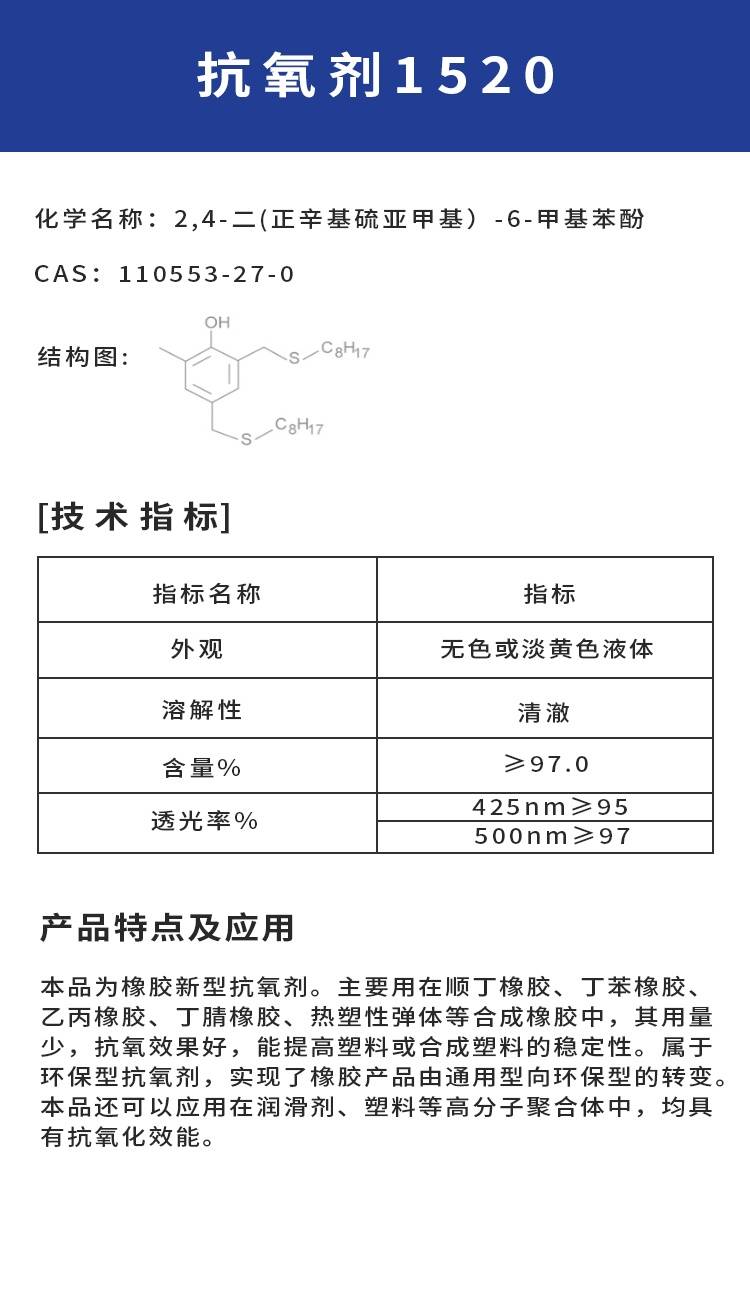 2222工厂抗氧剂1520 110553-27-0液体抗氧化剂 橡胶塑料润滑油热稳定剂