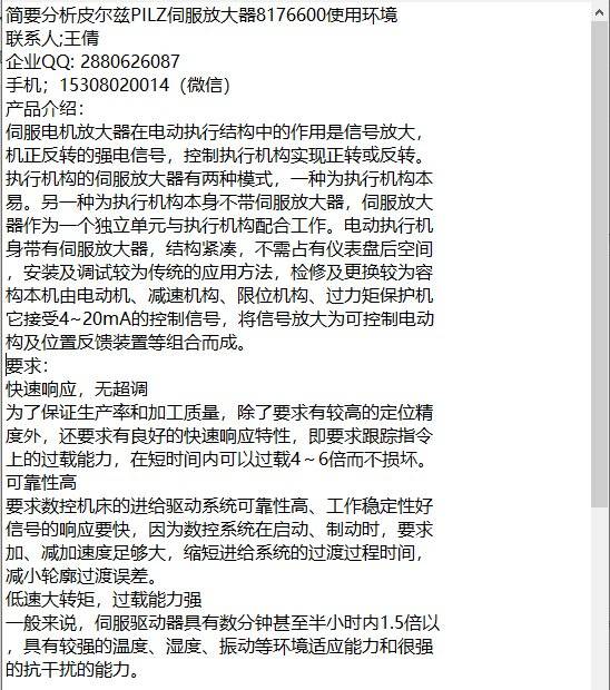 简要分析皮尔兹PILZ伺服放大器8176600使用环境