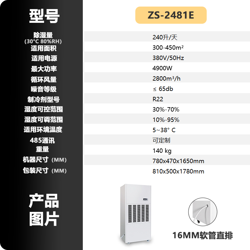 除湿机240L/D中湿制造仓库地下室酒窖抽湿器耐低温冷库吸湿器