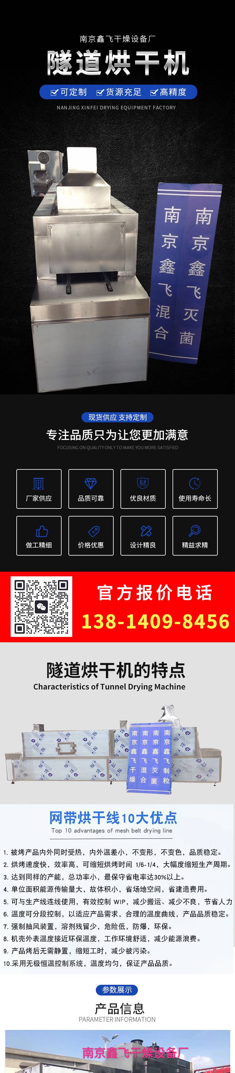 鑫飞 隧道烘干机 热风循环干燥机 受热均匀 内置安全系统