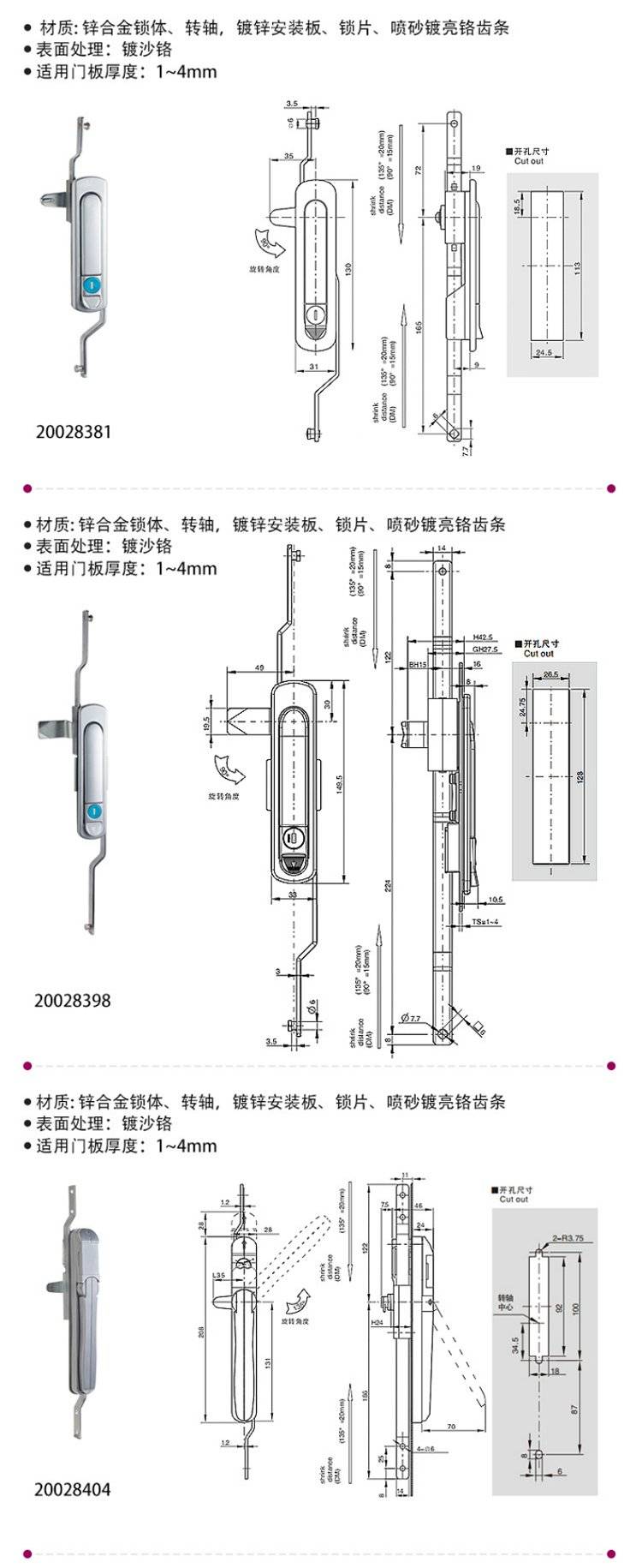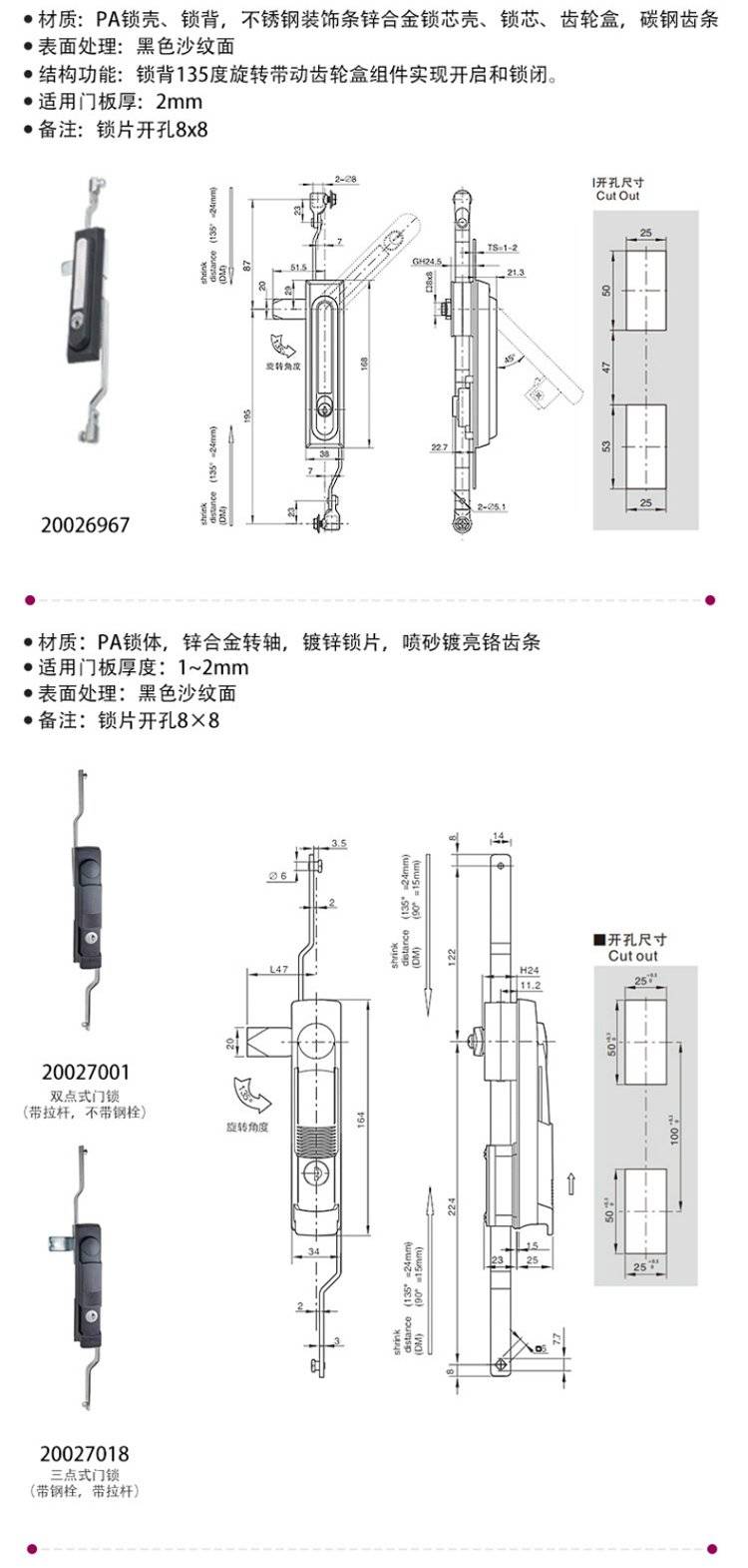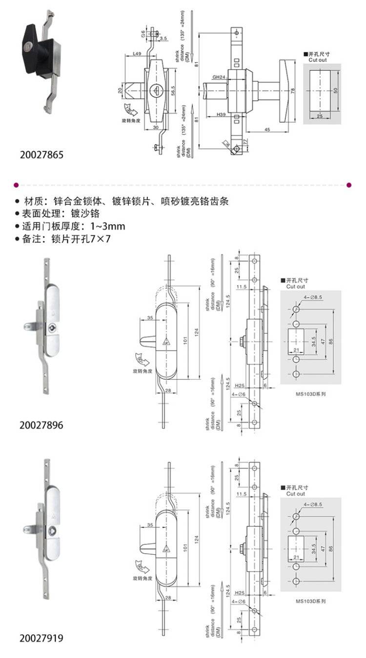 ESSENTRA益升华 三点式锌合金配电箱柜门锁 SR 5537齿轮传动式连杆锁