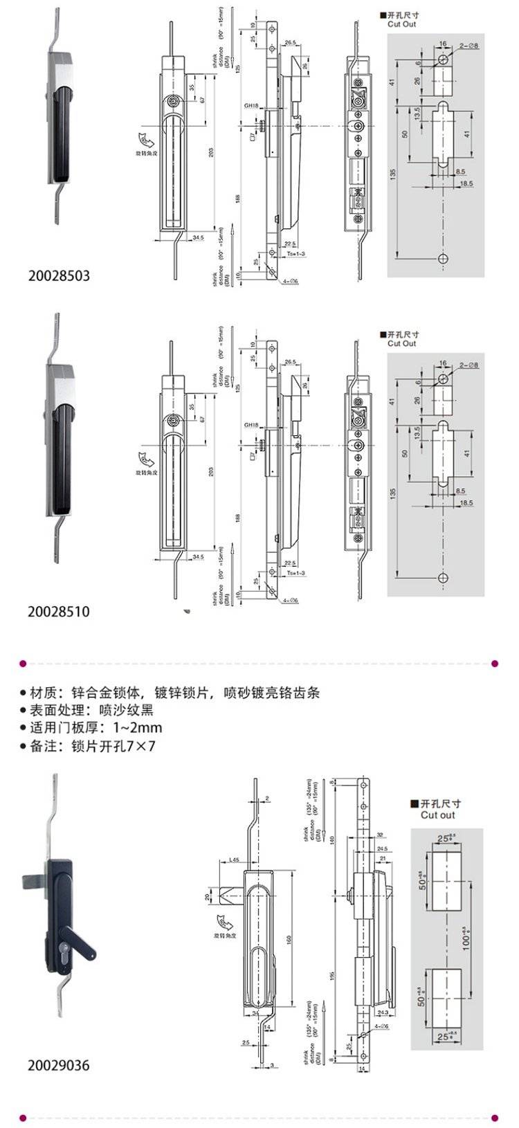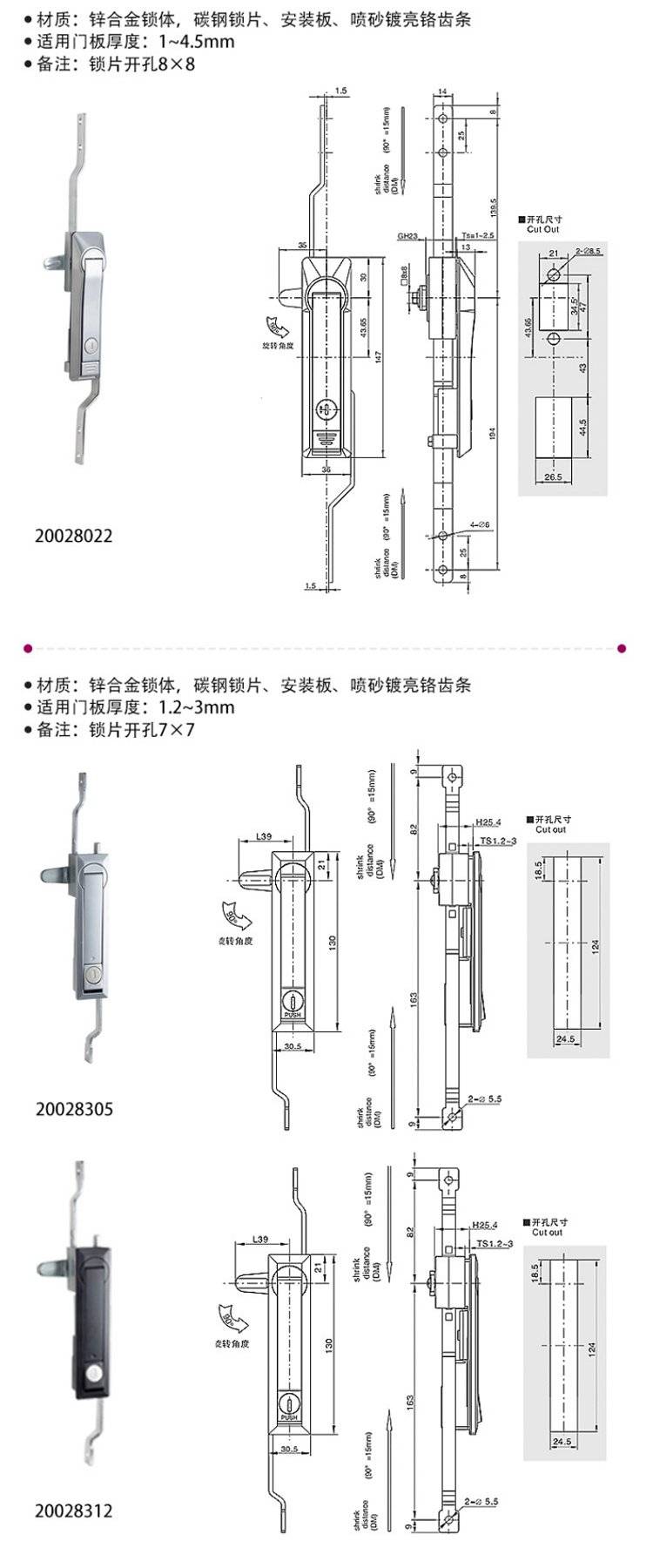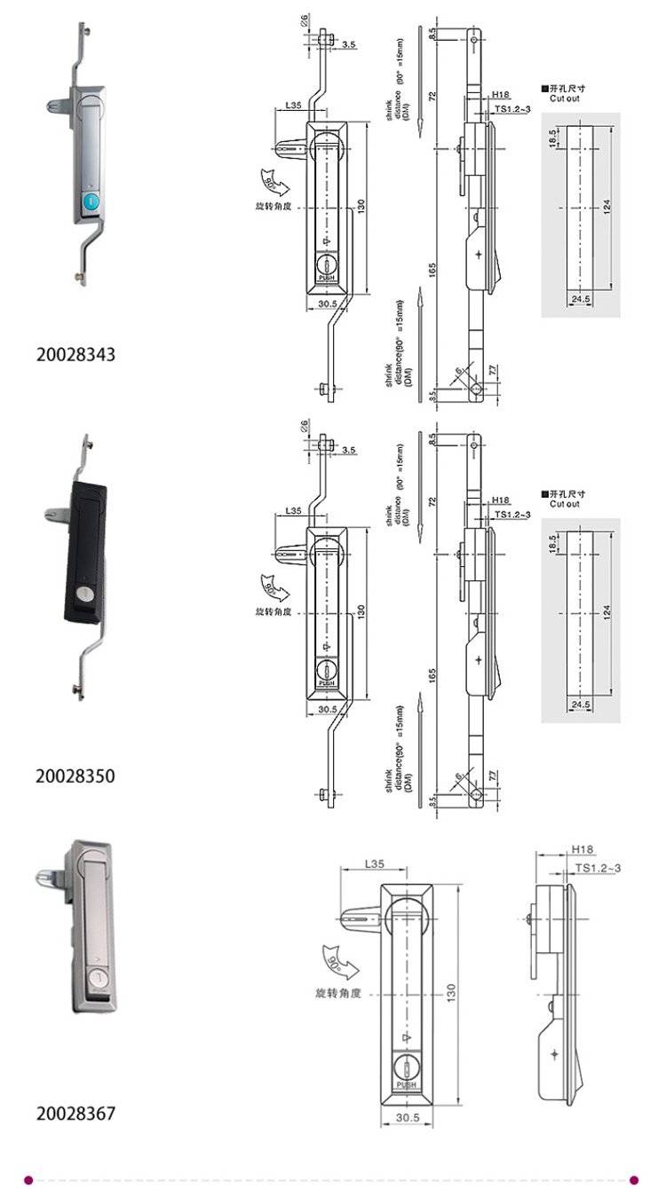 ESSENTRA益升华 三点式锌合金配电箱柜门锁 SR 5537齿轮传动式连杆锁