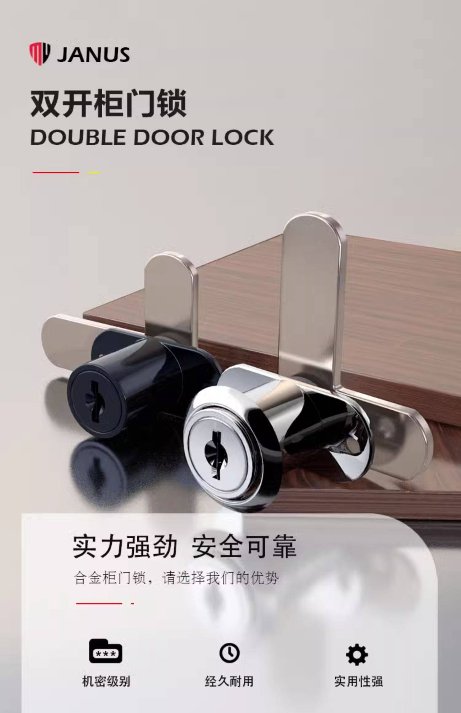 双开柜门双门锁7字型对开转舌锁文件柜锁信箱锁铁皮橱柜锁家具锁
