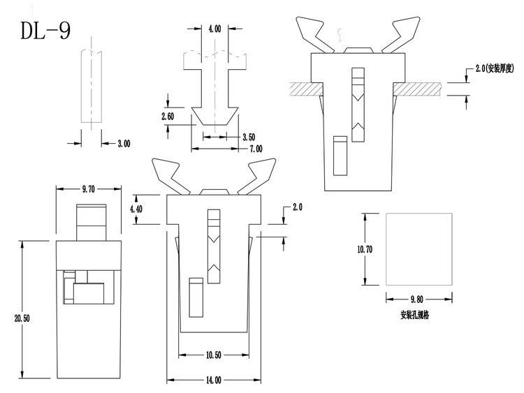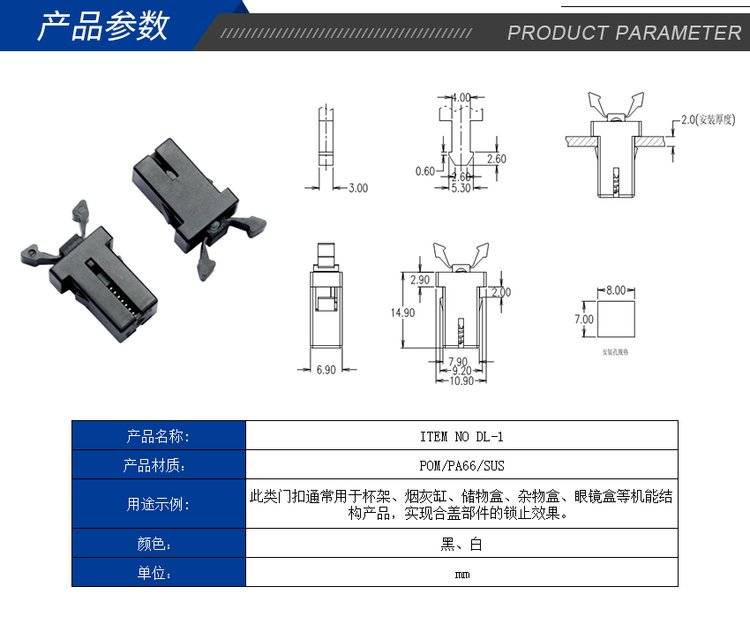 塑料门扣DL-9 电器家具盒盖尼龙迷你开关锁 机械按压式自动锁紧卡扣
