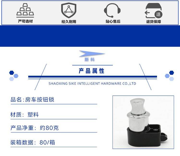 斯科房车按钮锁 船艇锁游艇无钥匙吊柜橱柜锁家具把手按压锁A6515
