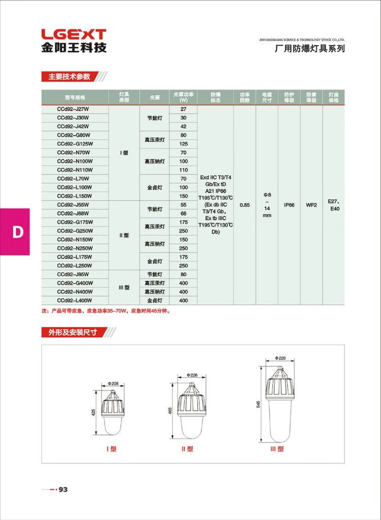 CCD92工厂吊杆护栏灯 化工厂应急平台灯 高效节能 金阳王