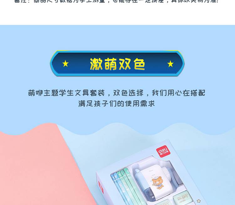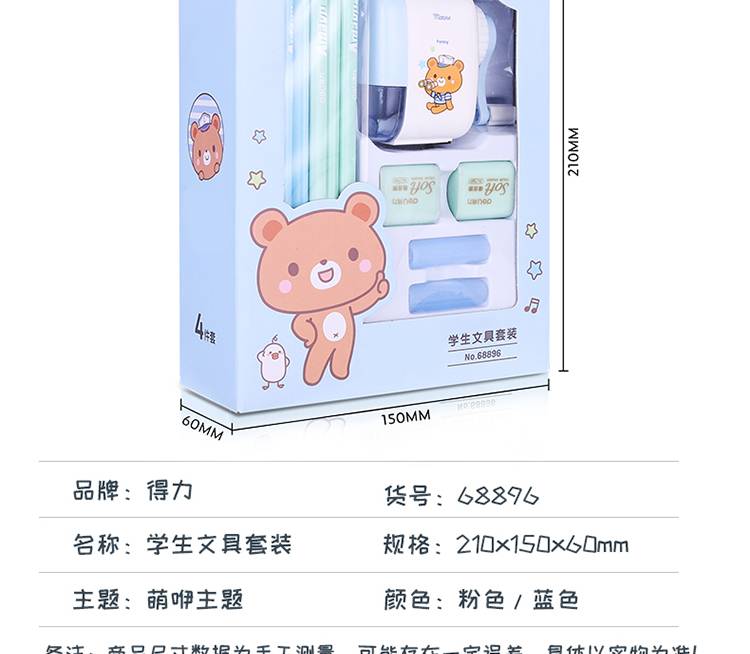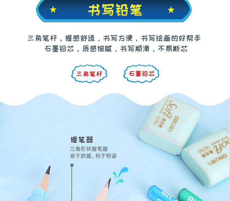 DELI 68896 萌咿系大礼包 铅笔 卷笔刀 橡皮 握笔器 学习文具17件套 蓝色