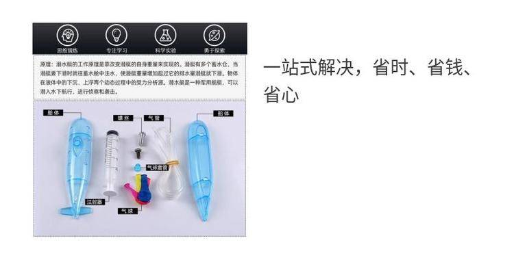 自制潜水艇diy创意科技小制作儿童幼儿园科学steam创客实验器材