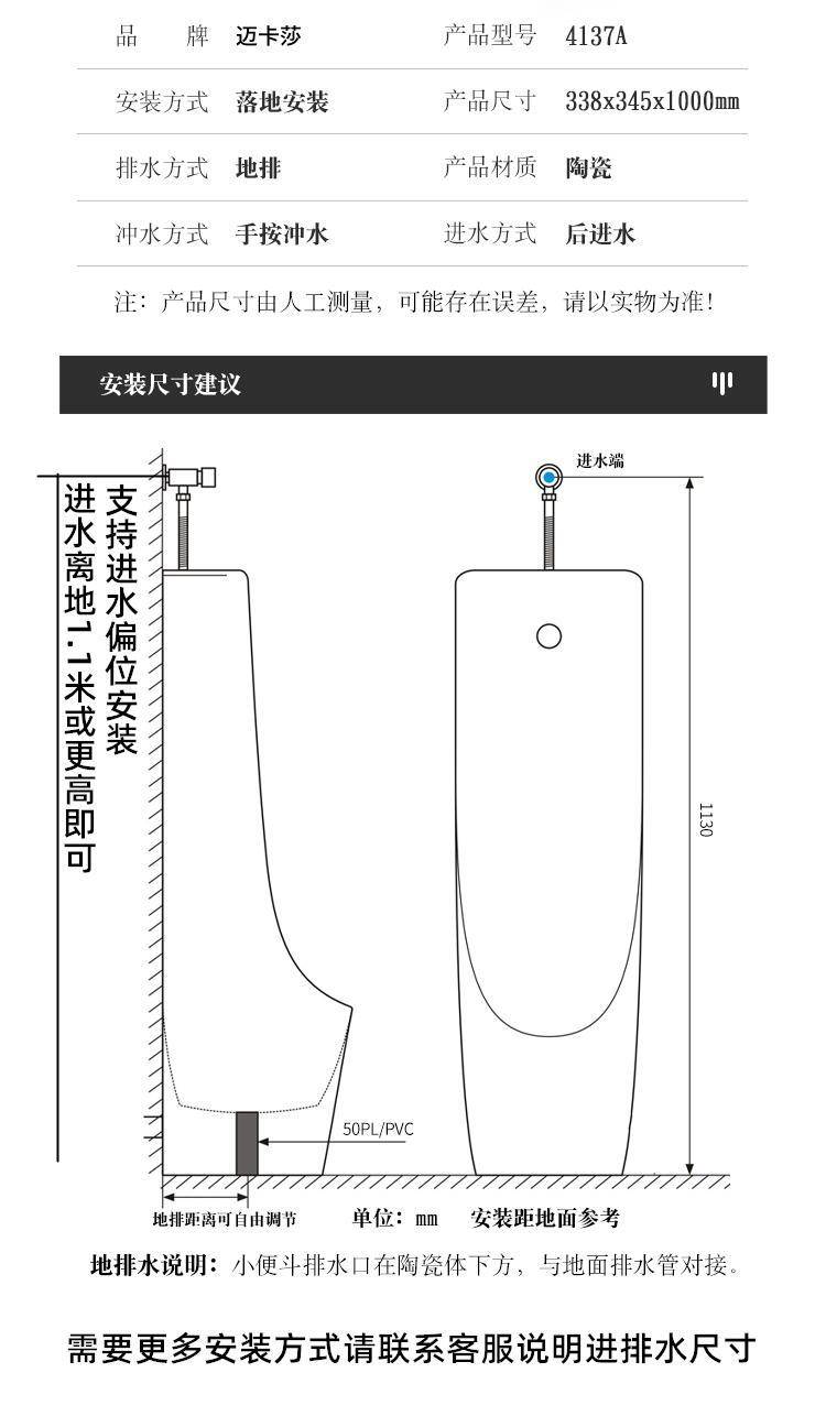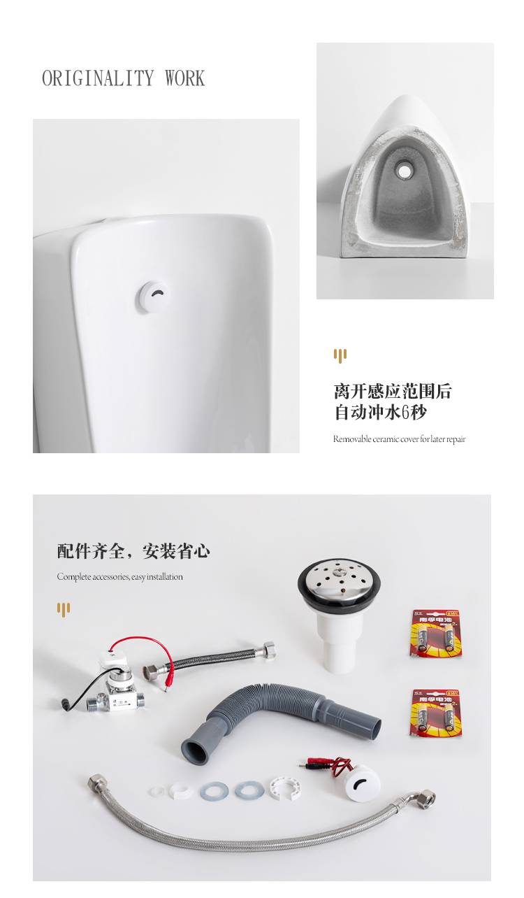 立式明装一体感应陶瓷男士落地式小便斗成人小便池家用小便器尿斗