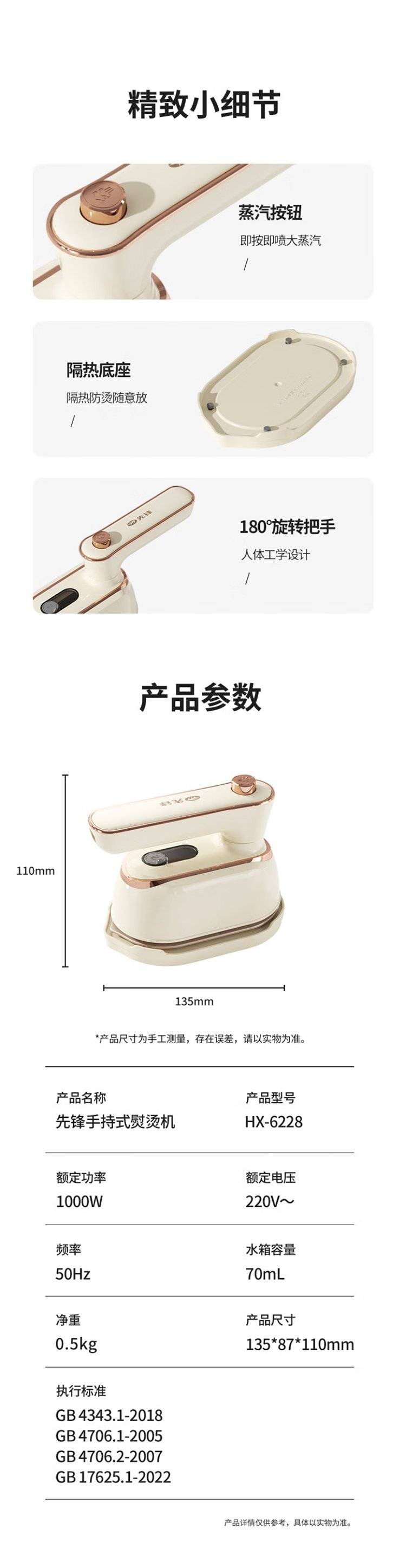 先锋新款便携折叠手持式熨烫机大蒸汽干湿平挂两用电熨斗