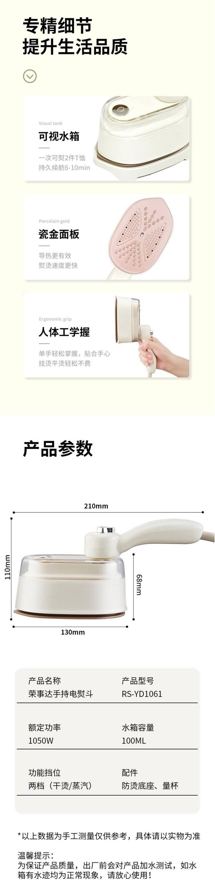 荣事达便携式手持挂烫机电熨斗RS-YD1061 员工福利定制企业团购
