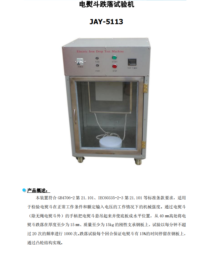 嘉仪电熨斗跌落试验机 电机和凸轮结构驱动 JAY-5113