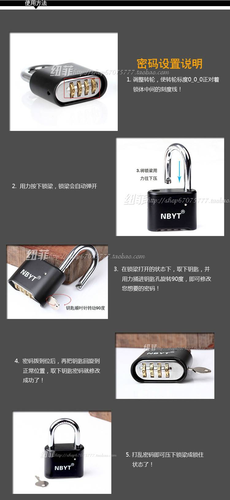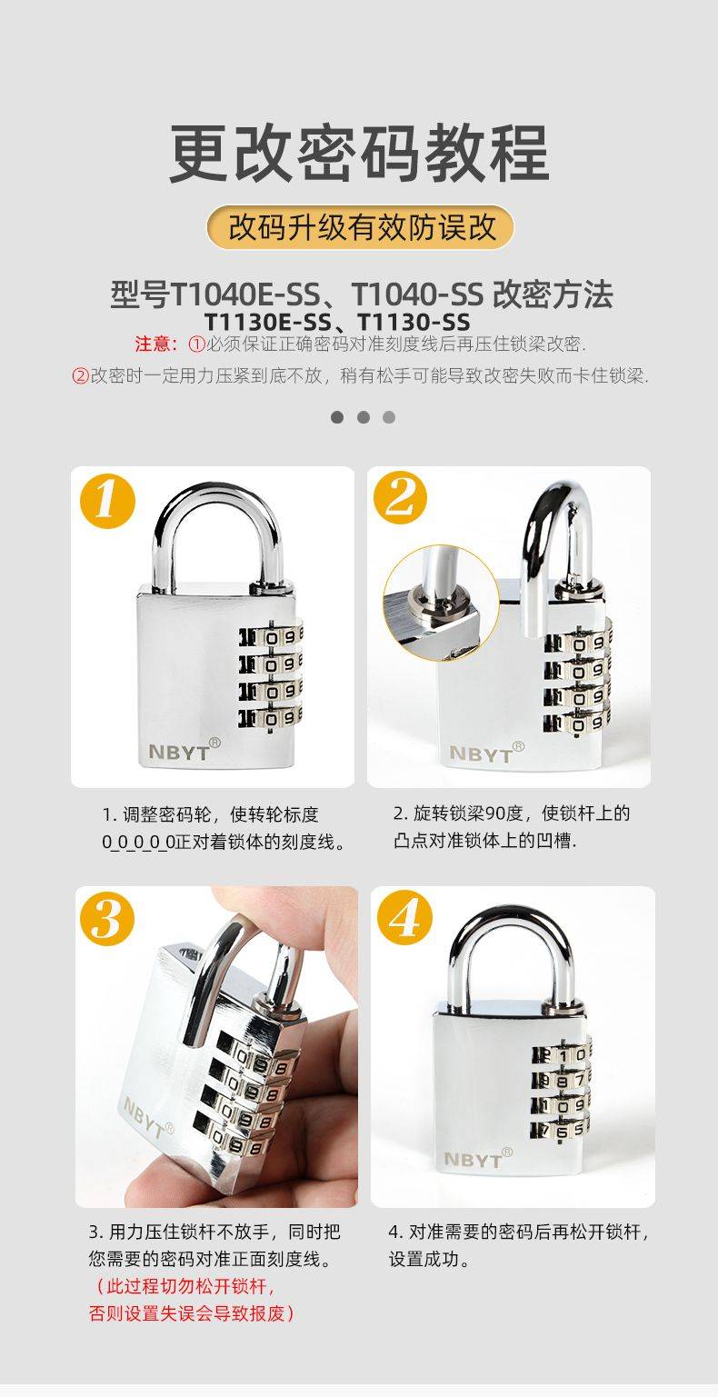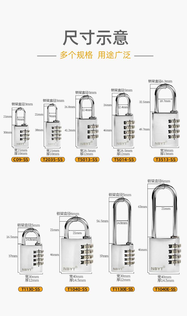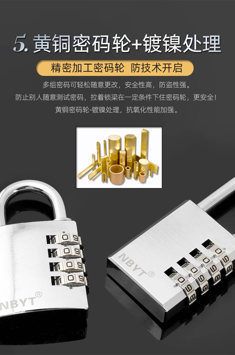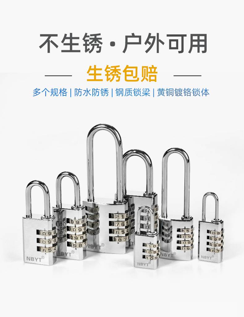 NBYT304不锈钢锁梁防水防锈箱包锁健身房更衣柜子房门密码锁挂锁