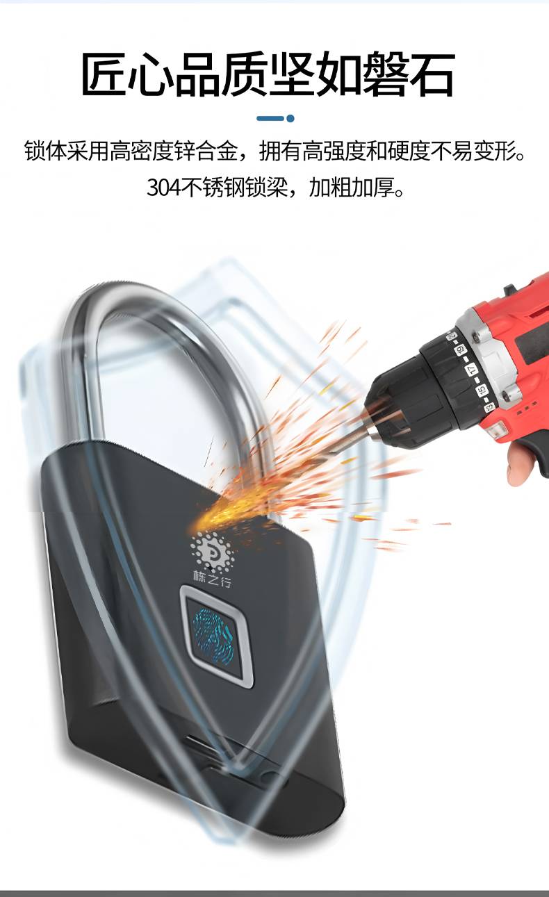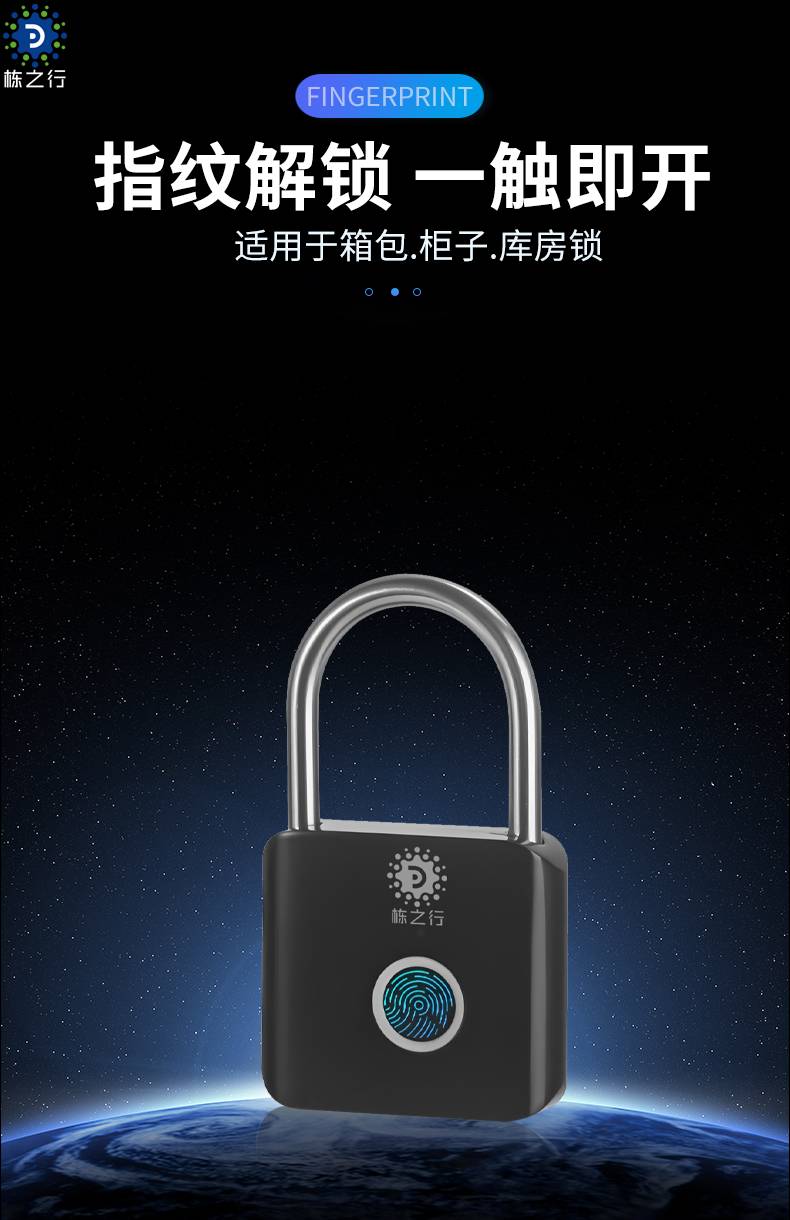 栋之行智能指纹挂锁 箱包电动车防盗锁 一触即开
