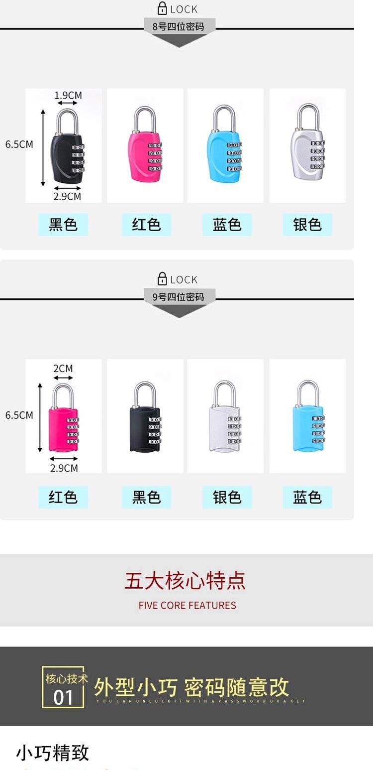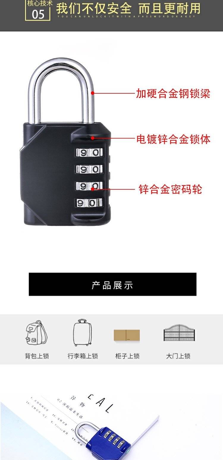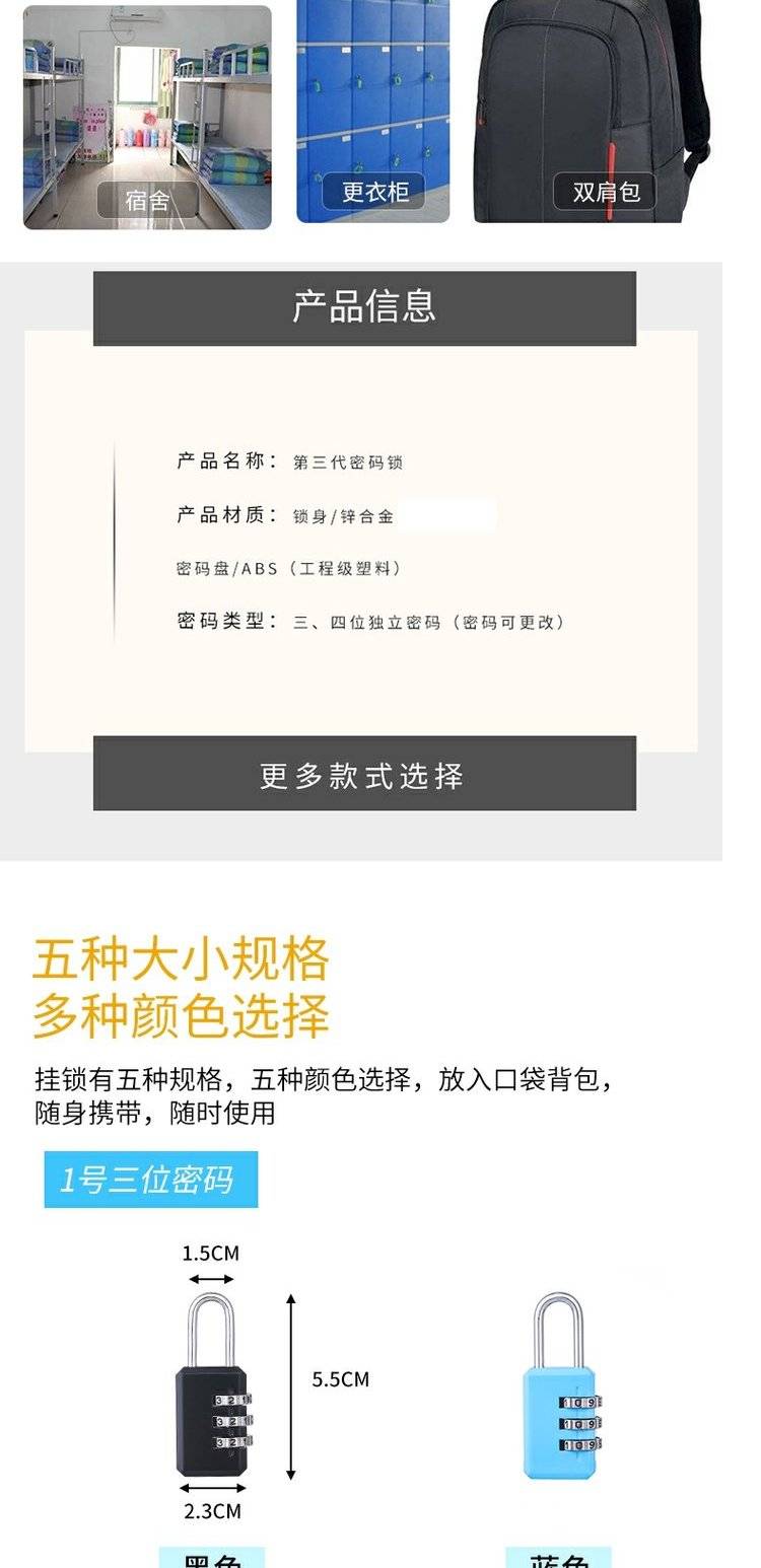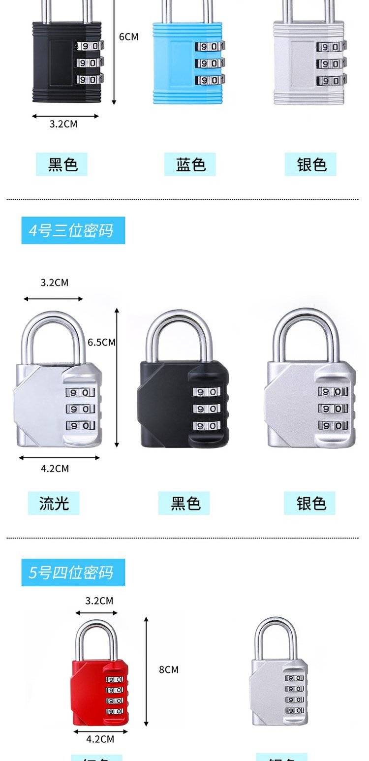 金属款彩色密码挂锁行李箱包密码锁健身房柜子门挂锁密码锁头包邮