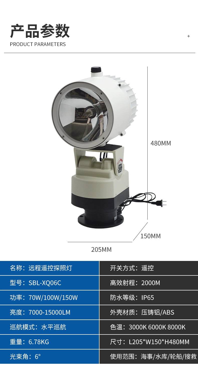 厂家220v船用旋转氙气灯探照灯 码头水库防水户外led投光灯