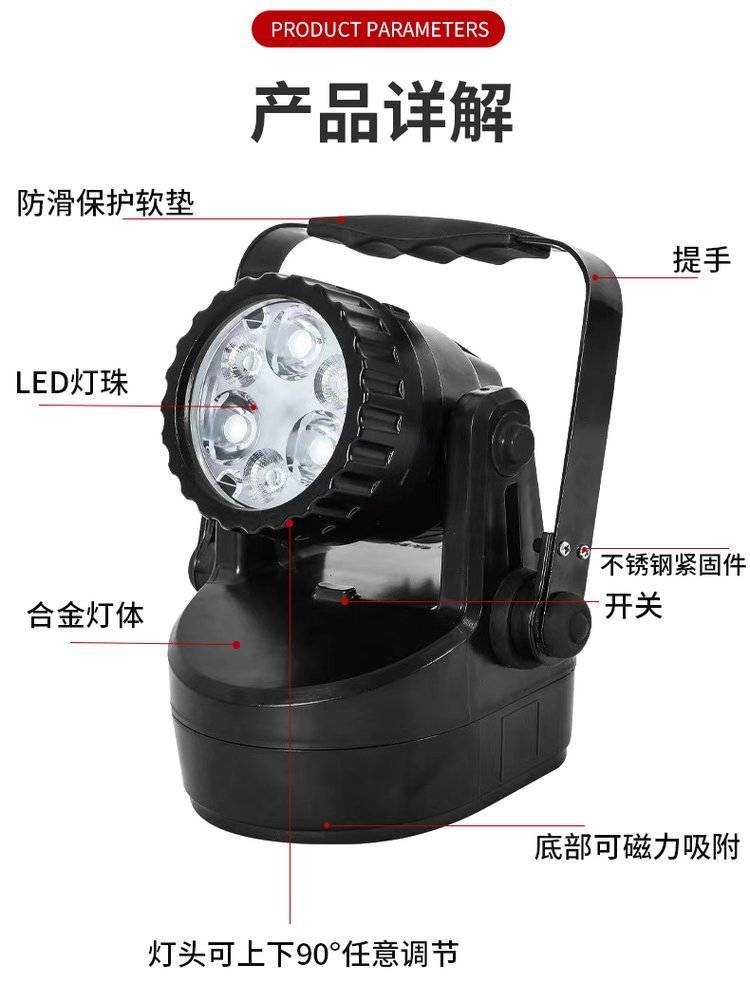 JIW5282手提式多功能防爆强光灯户外防水防汛灯探照灯磁吸检修灯
