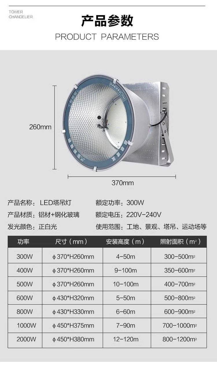 led塔吊灯1000瓦建筑之星大功率照明超亮工地探照灯2000W