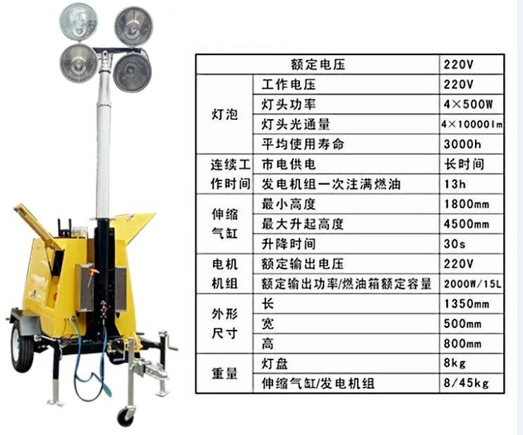 柴油移动照明灯 消防救援应急探照灯 夜间全方位施工照明车 升降自由