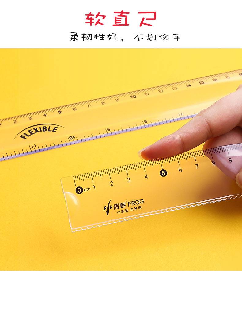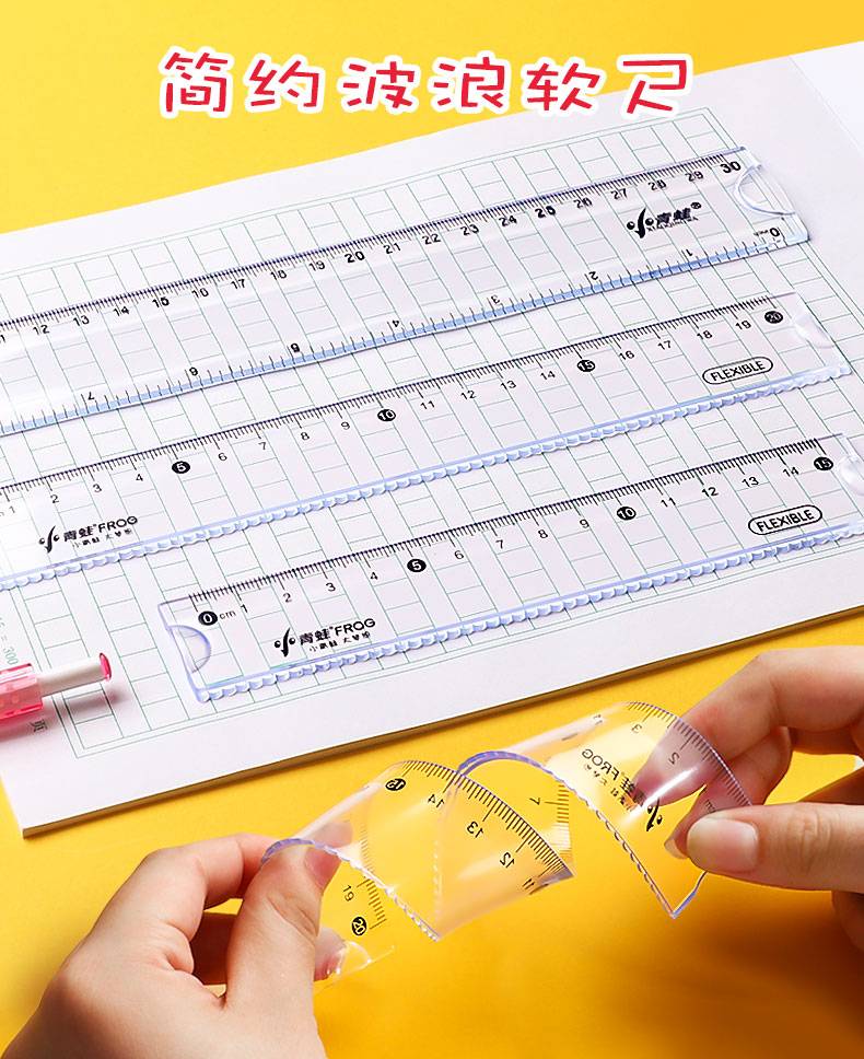 软尺小学生 带波浪线20厘米直尺透明一年级15cm格尺学习文具套装