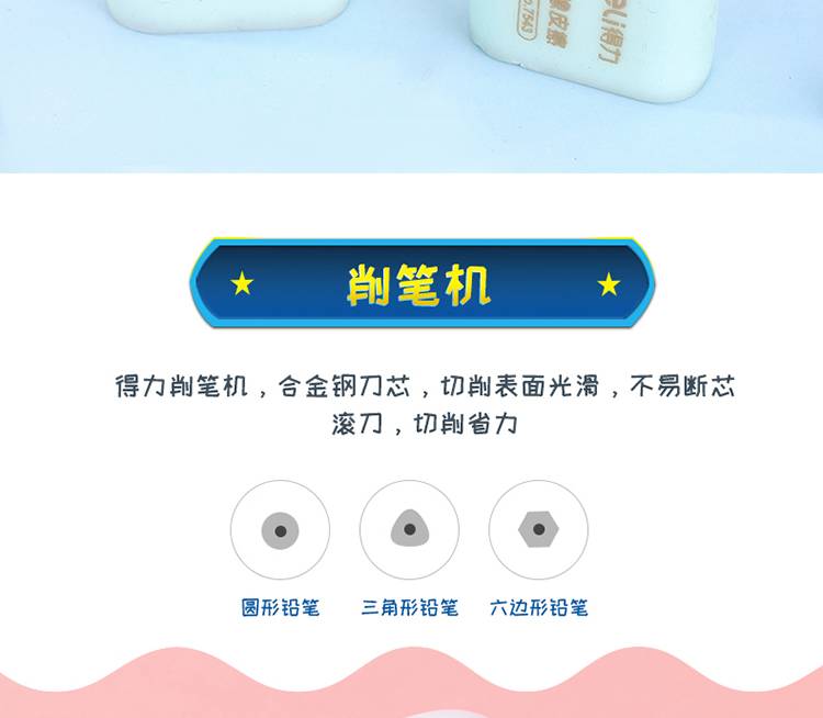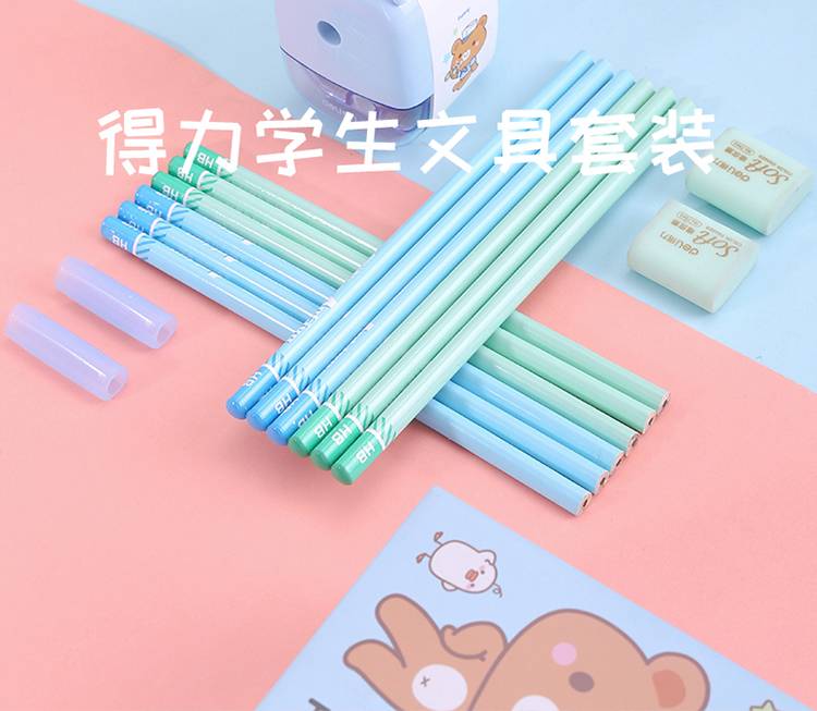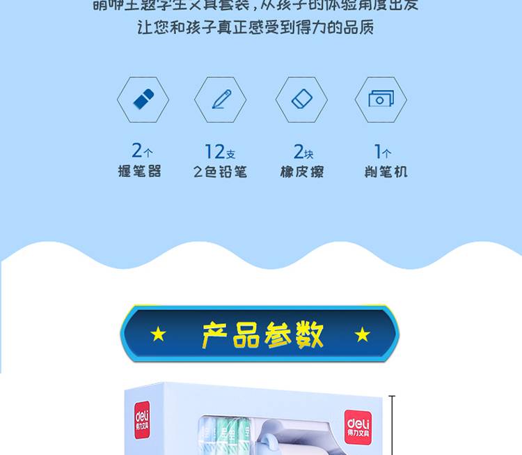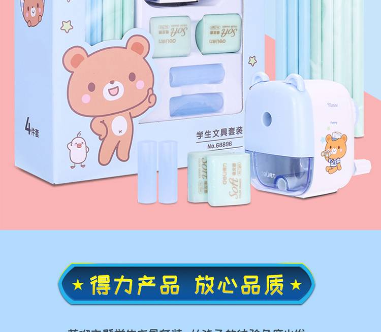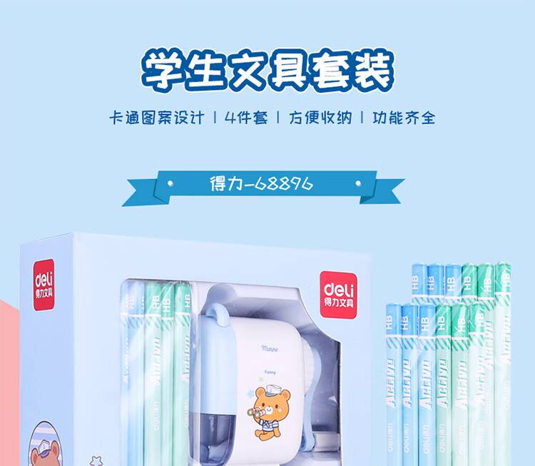DELI 68896 萌咿系大礼包 铅笔 卷笔刀 橡皮 握笔器 学习文具17件套 蓝色