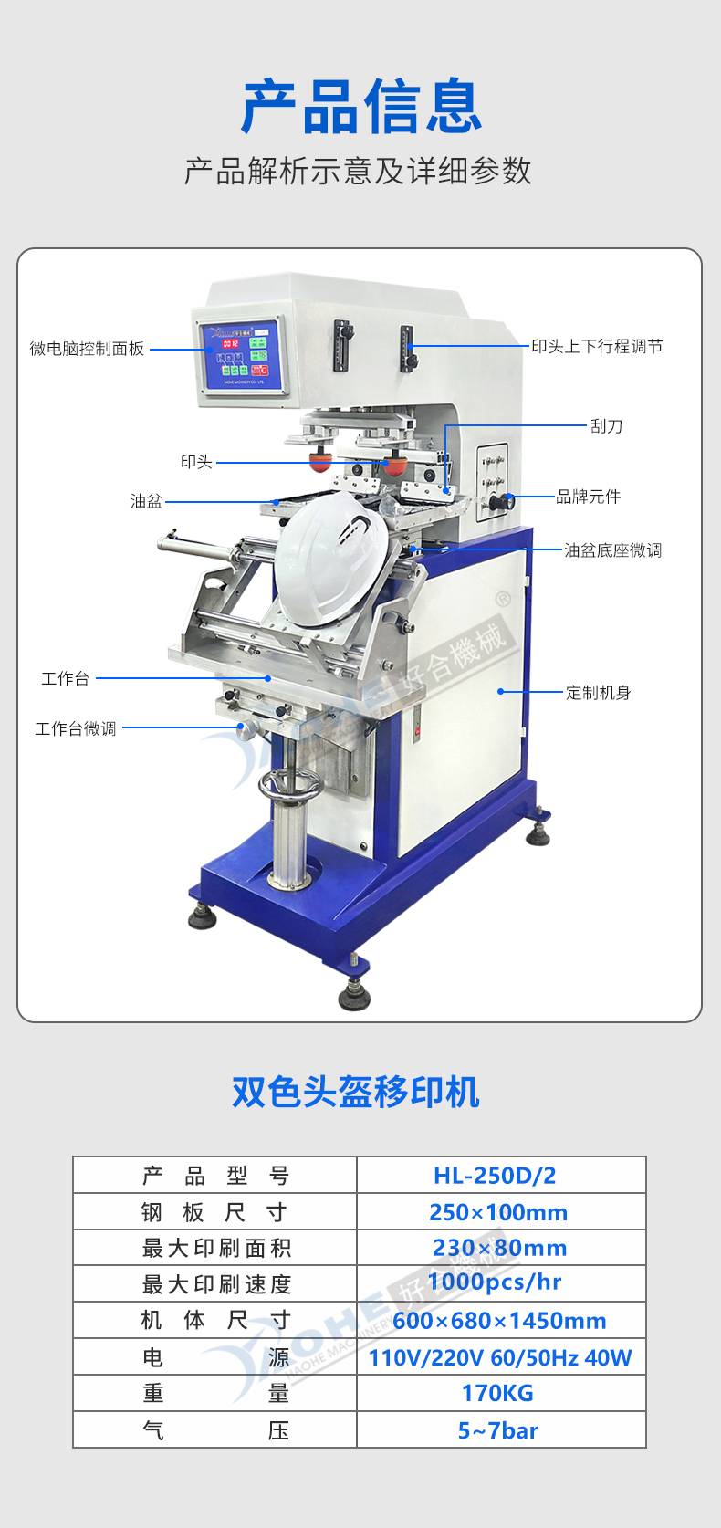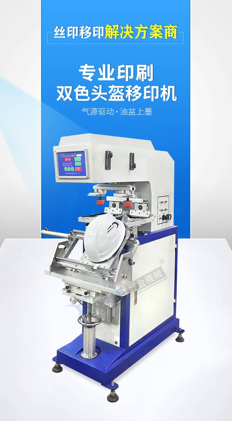 好合HL-250D/2头盔移印机 安全帽双色穿梭工作台旋转油盆移印机器