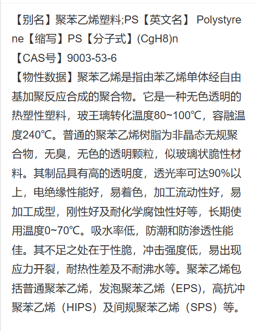 聚苯乙烯树脂 PS 525 GPPS 透明级 注塑级 500g/袋