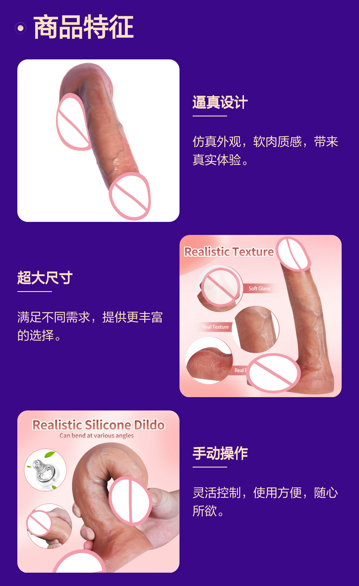 跨境仿真阳具 软肉质感逼真体验 超大尺寸手动假阳具自慰器