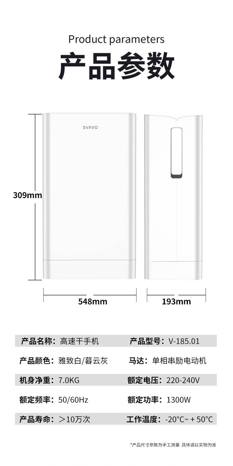 SVAVO瑞沃干手器高速壁挂式干手机卫生间全自动感应酒店烘手机