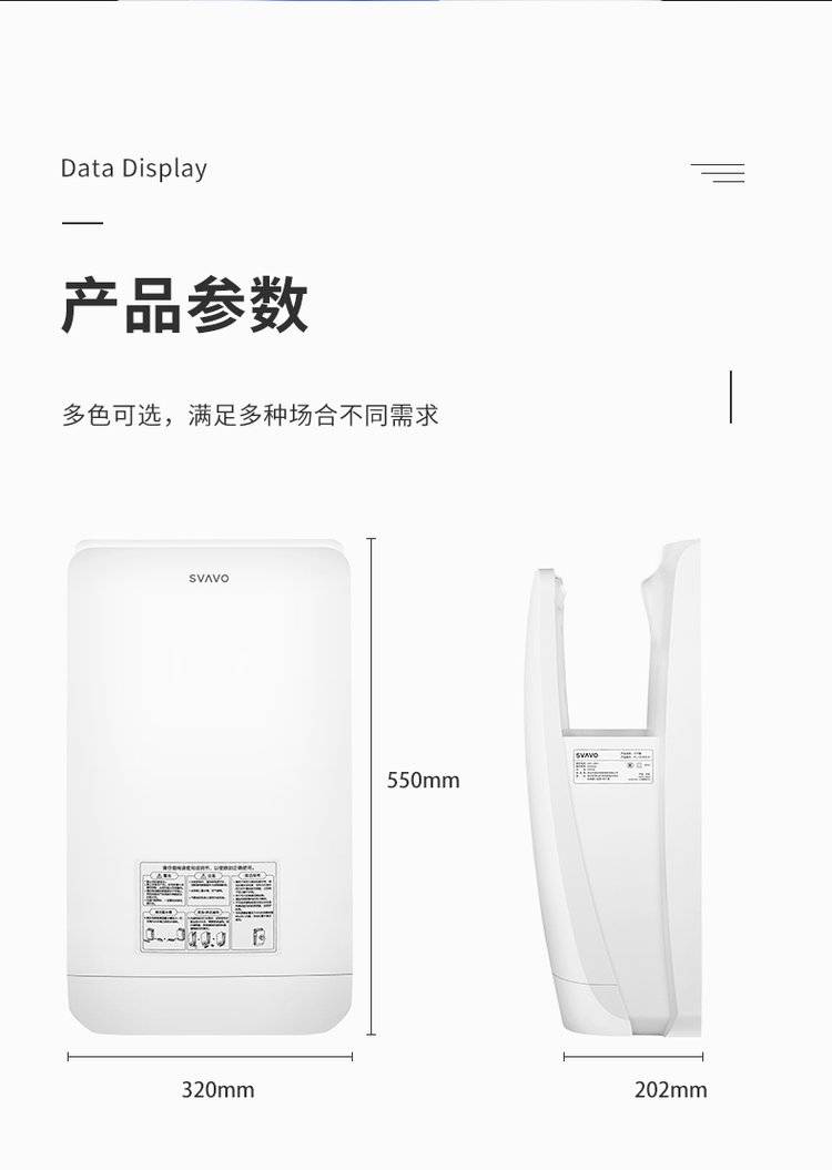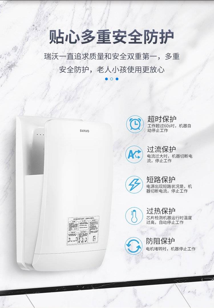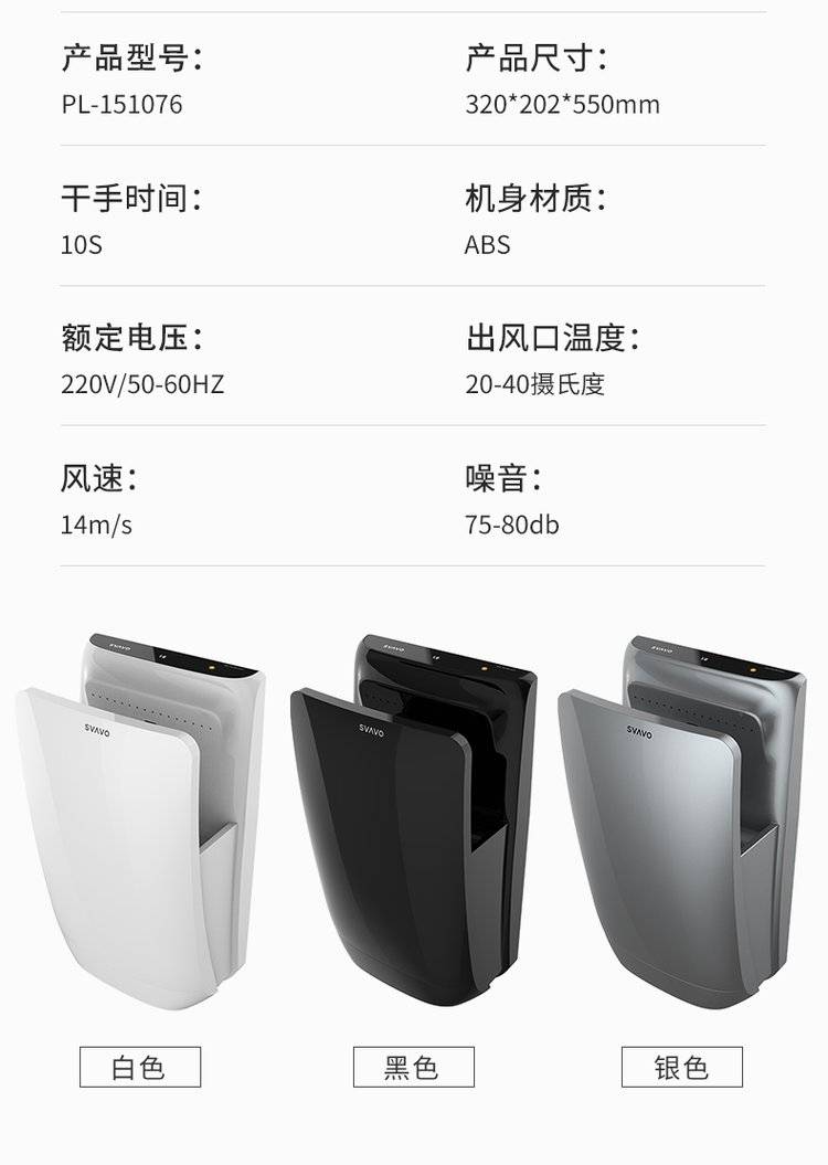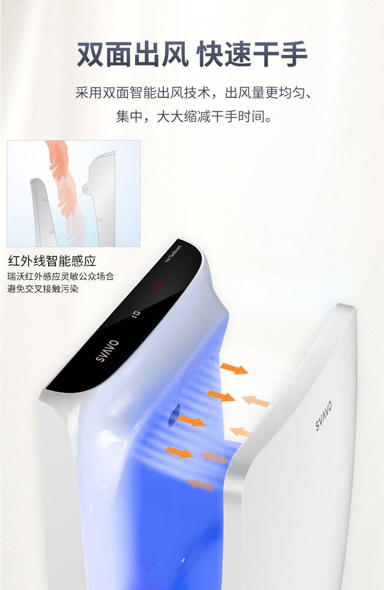 SVAVO 瑞沃感应干手器全自动烘手器公共卫生间不锈钢烘手机商用