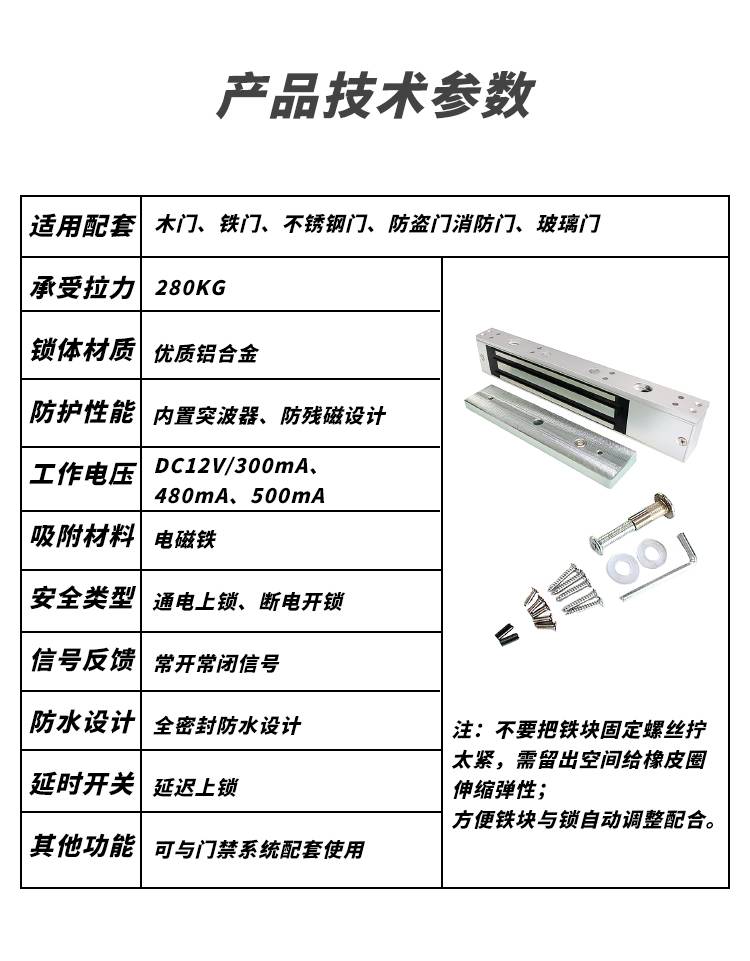 门禁磁力锁明装280kg电磁锁单/双门玻璃门电吸门锁延时反馈电控锁
