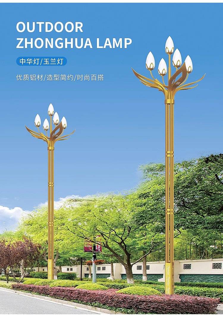 道路玉兰灯中华景观路灯5/8/10/15米广场灯户外高杆灯定制厂家
