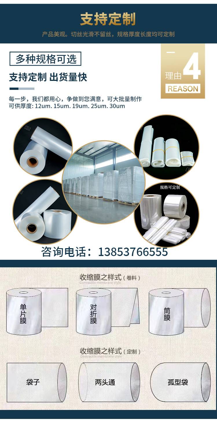 五层共挤POF组合收缩膜 食品塑封膜 日用品文具使用