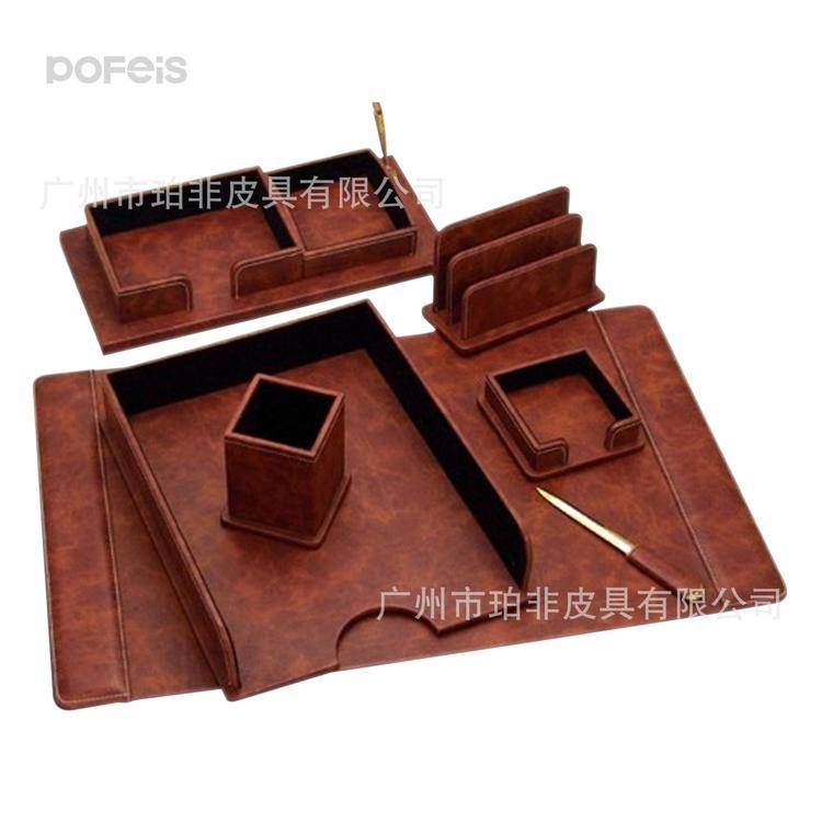 【名称】创意商务办公文具礼品组合套装牛皮桌面抽屉式文具收纳盒订货厂家