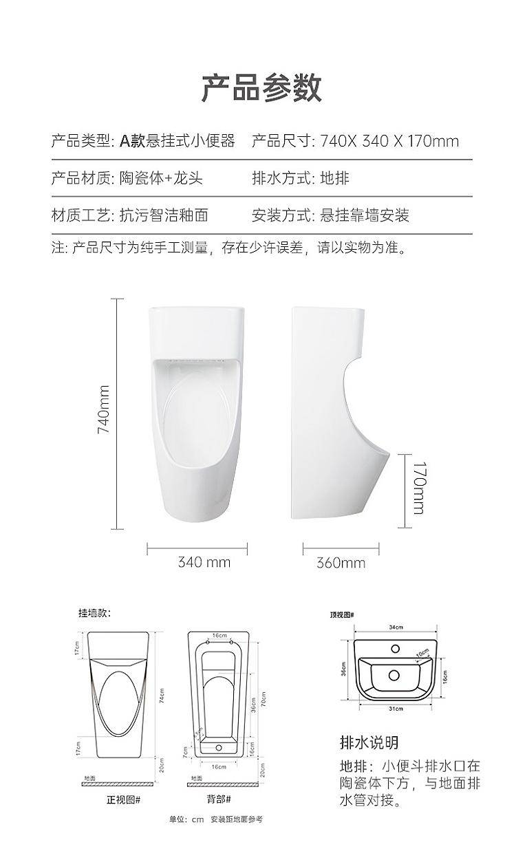 【挂墙式】单小便池(配下水器) 不含龙头,【挂墙式】小便池+普通龙头 【全套】,【挂墙式】小便池+抽拉龙头 【全套】,【落地式】单小便(配下水器) 不含龙头,【落地式】小便池+普通龙头 【全套】,【落地式】小便池+抽拉龙头 【全套】