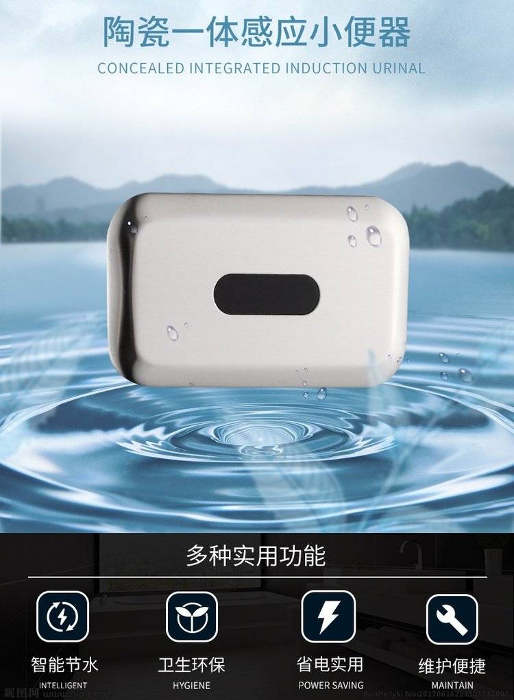 公共厕所 陶瓷一体小便感应器 小便斗冲水阀 洗手间男厕尿斗