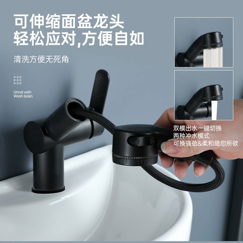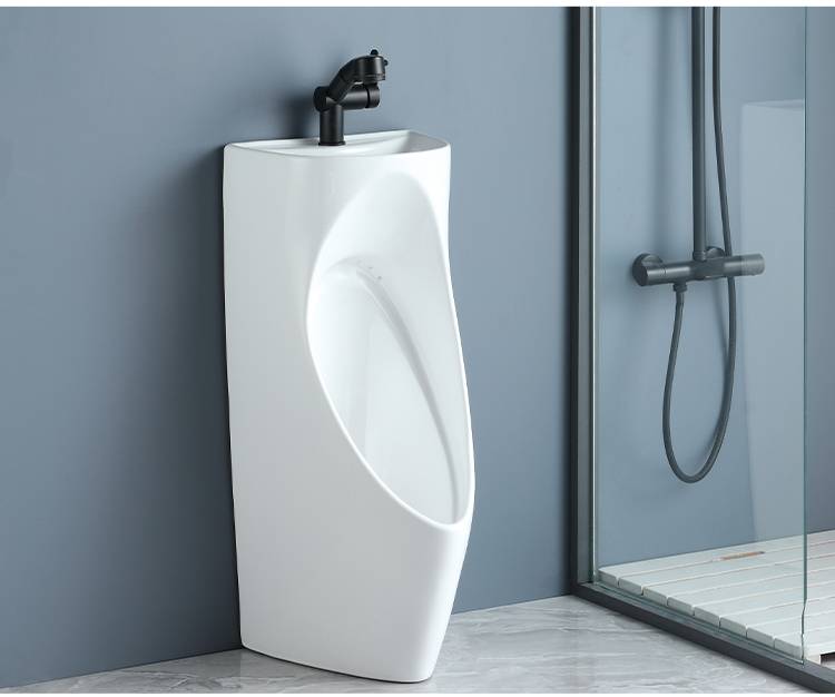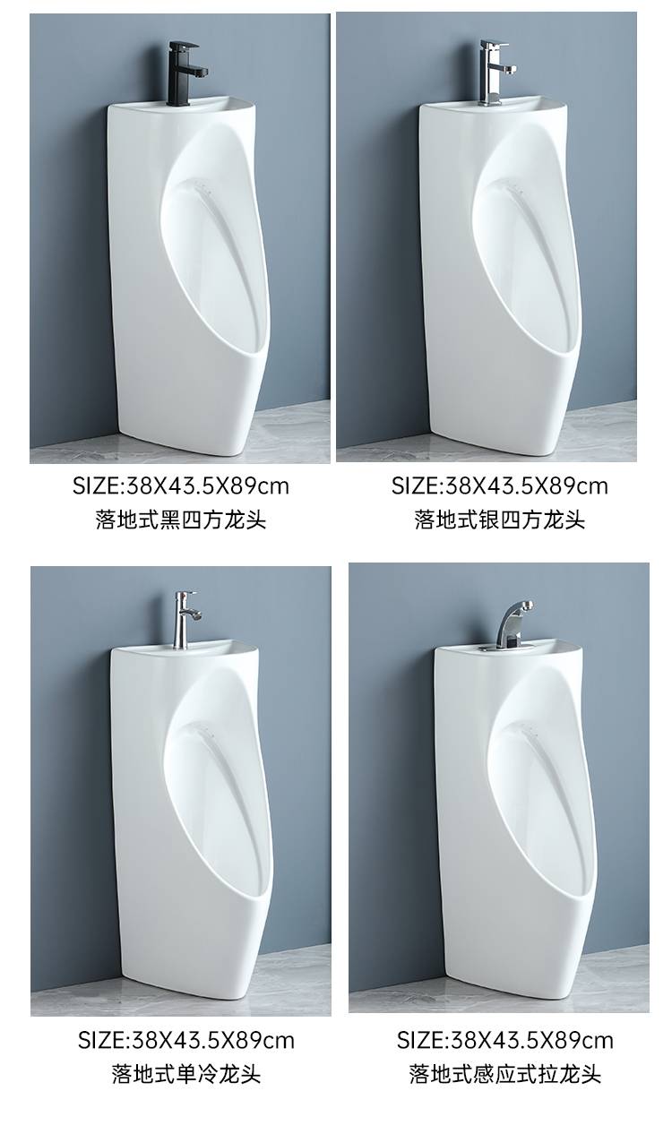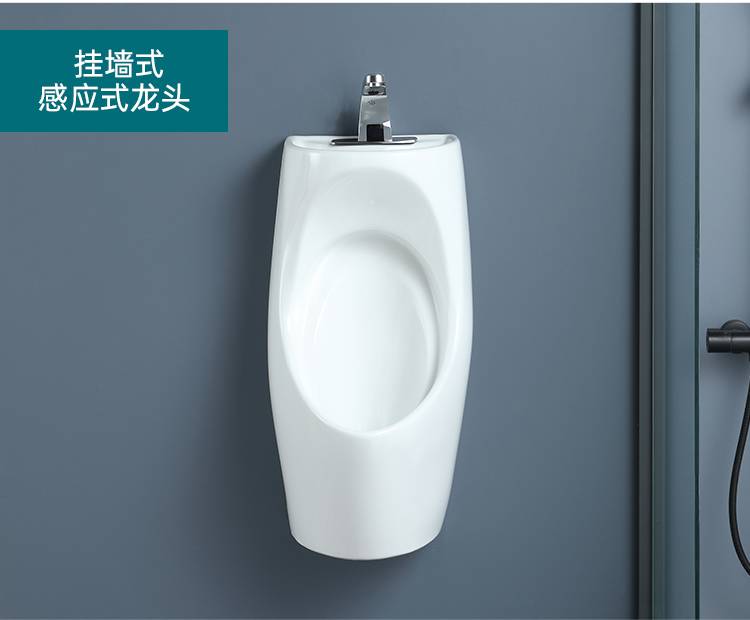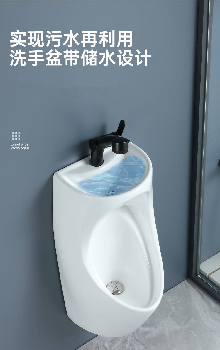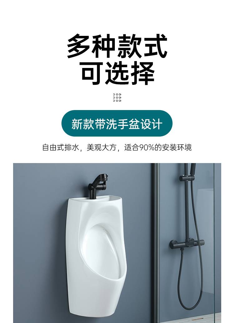 带洗手盆一体陶瓷小便器家用男士节水小便池立式挂墙式感应小便斗