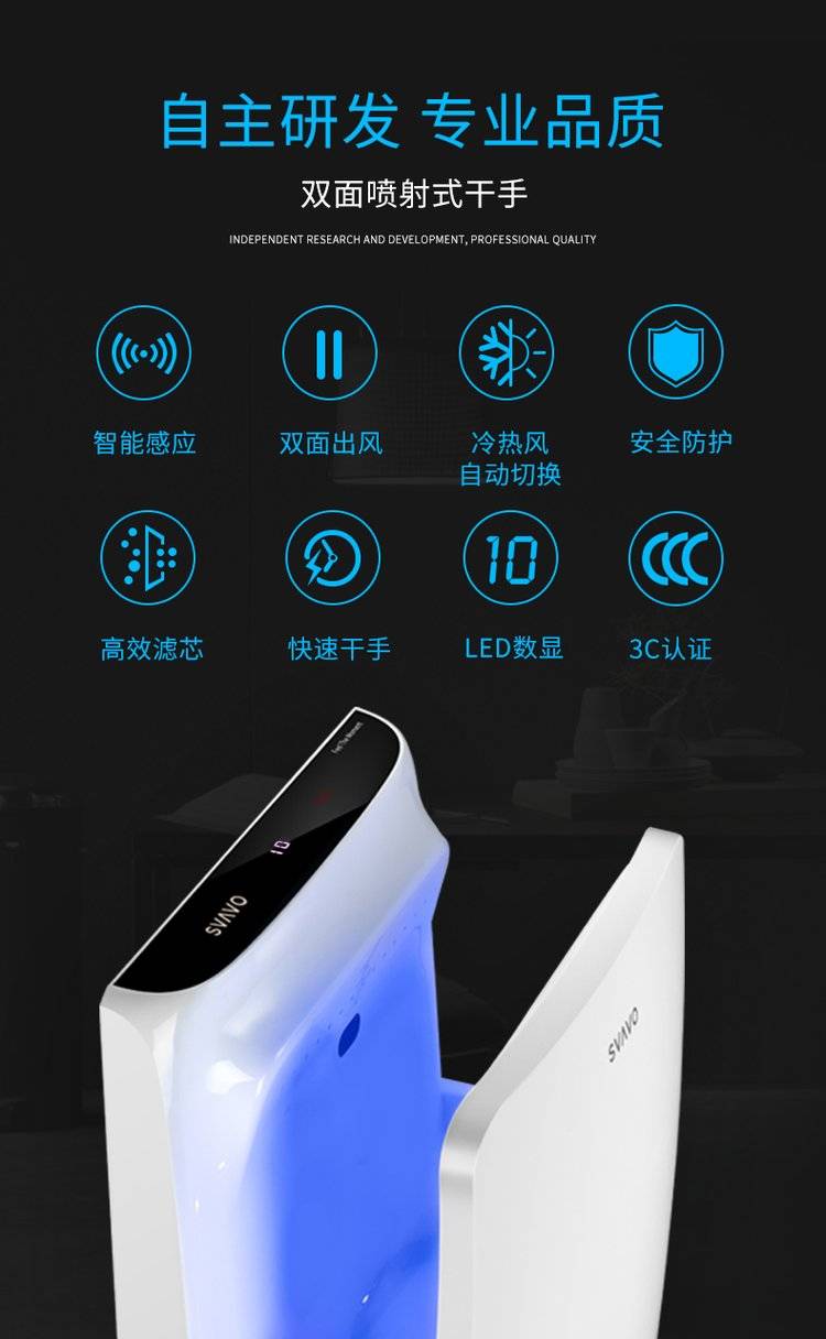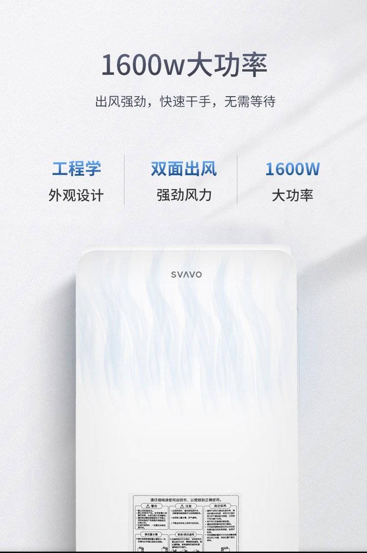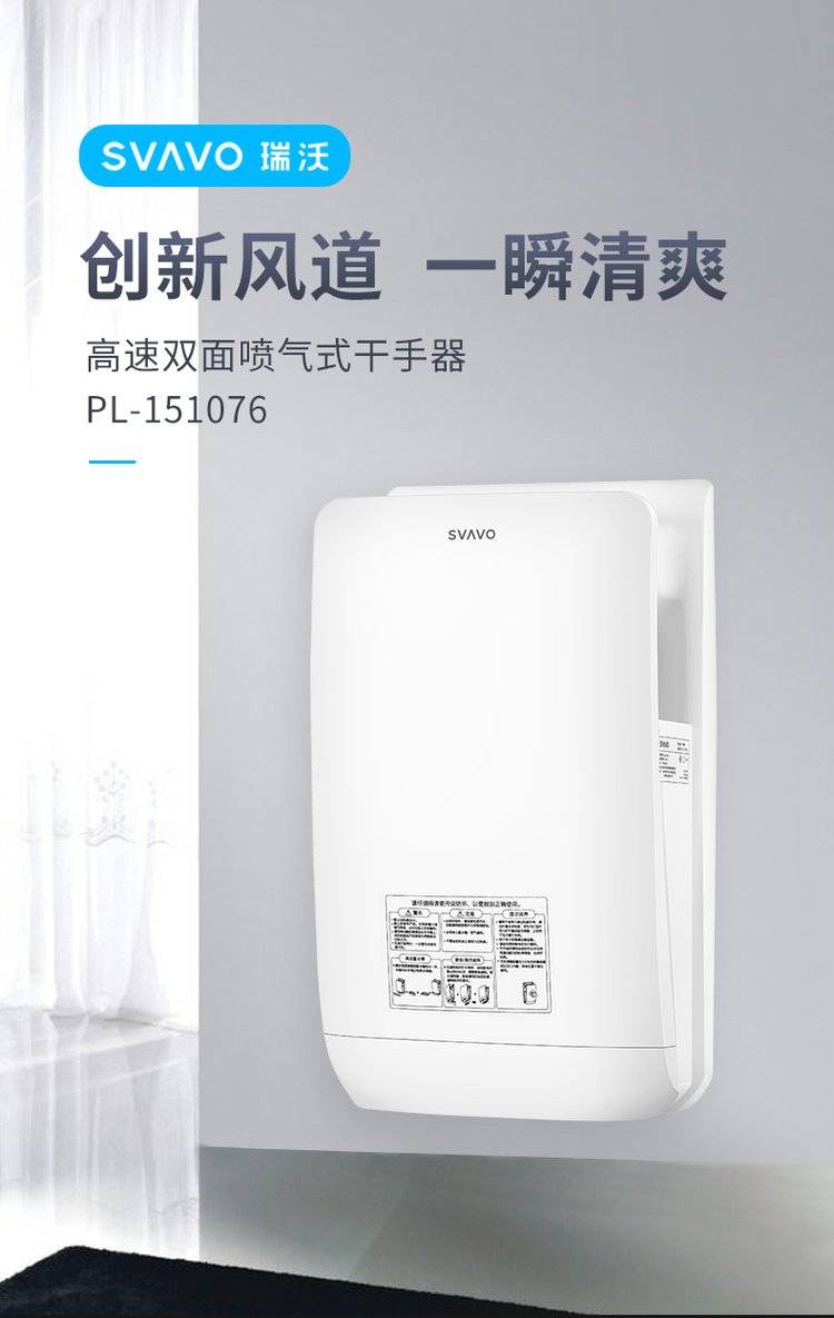 SVAVO 瑞沃感应干手器全自动烘手器公共卫生间不锈钢烘手机商用