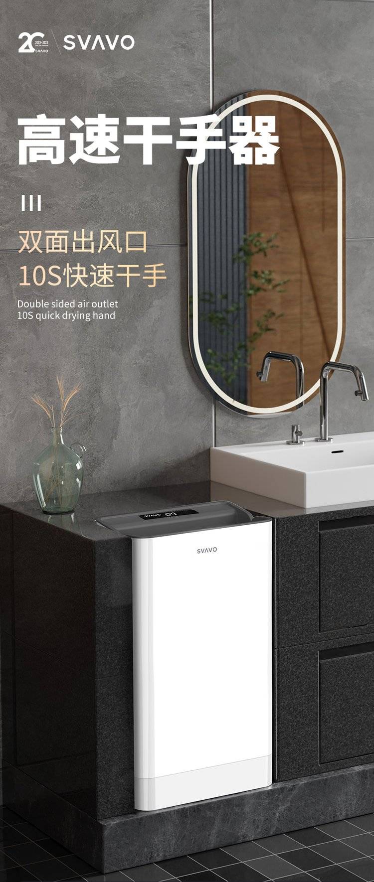 SVAVO瑞沃干手器高速壁挂式干手机卫生间全自动感应酒店烘手机