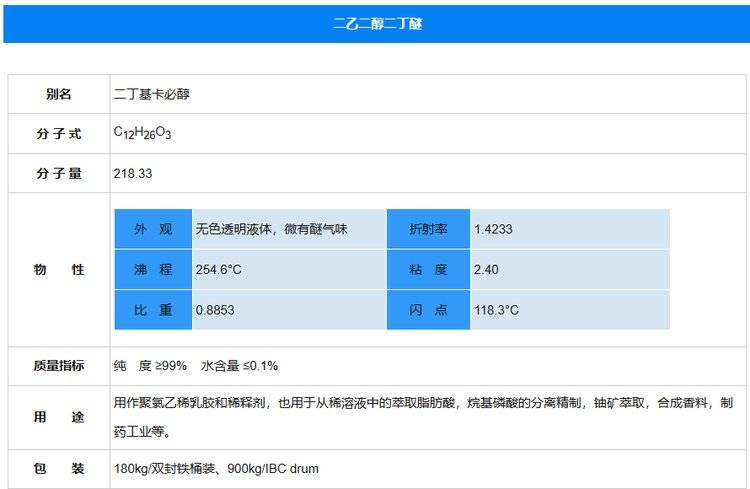 二乙二醇二丁醚112-73-2,纯度99%,聚氯乙稀乳胶和稀释剂