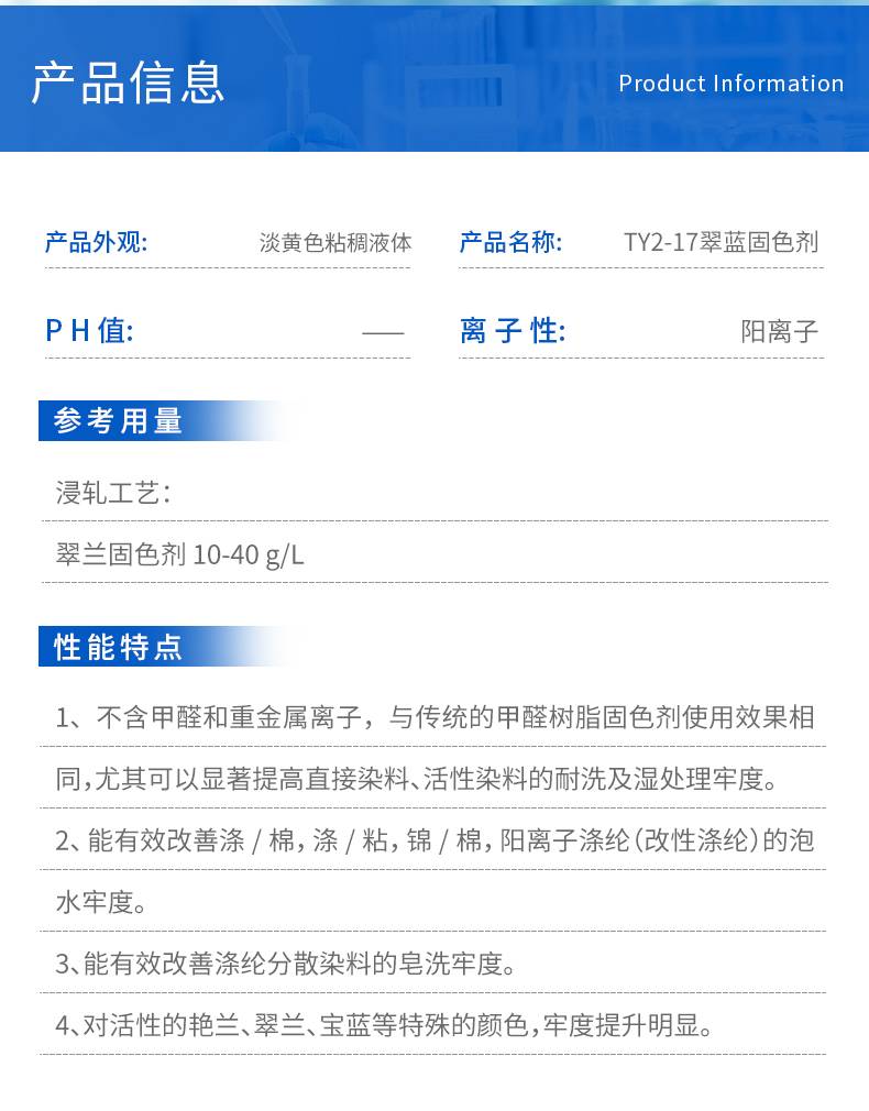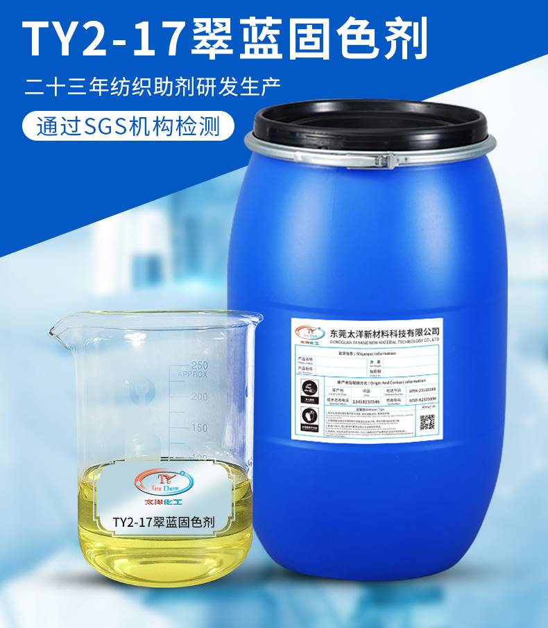 2222太洋新材料TY2-17翠蓝固色剂厂家 棉织物锦纶涤纶专用翠兰着色剂