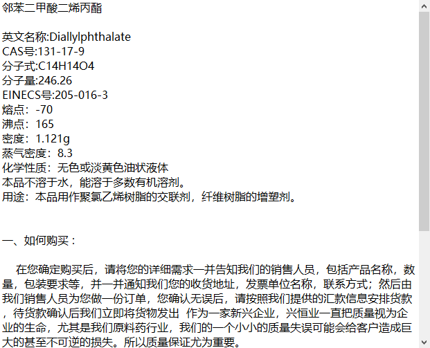 CAS号:131-17-9 用作聚氯乙烯树脂的交联剂 邻苯二甲酸二烯丙酯