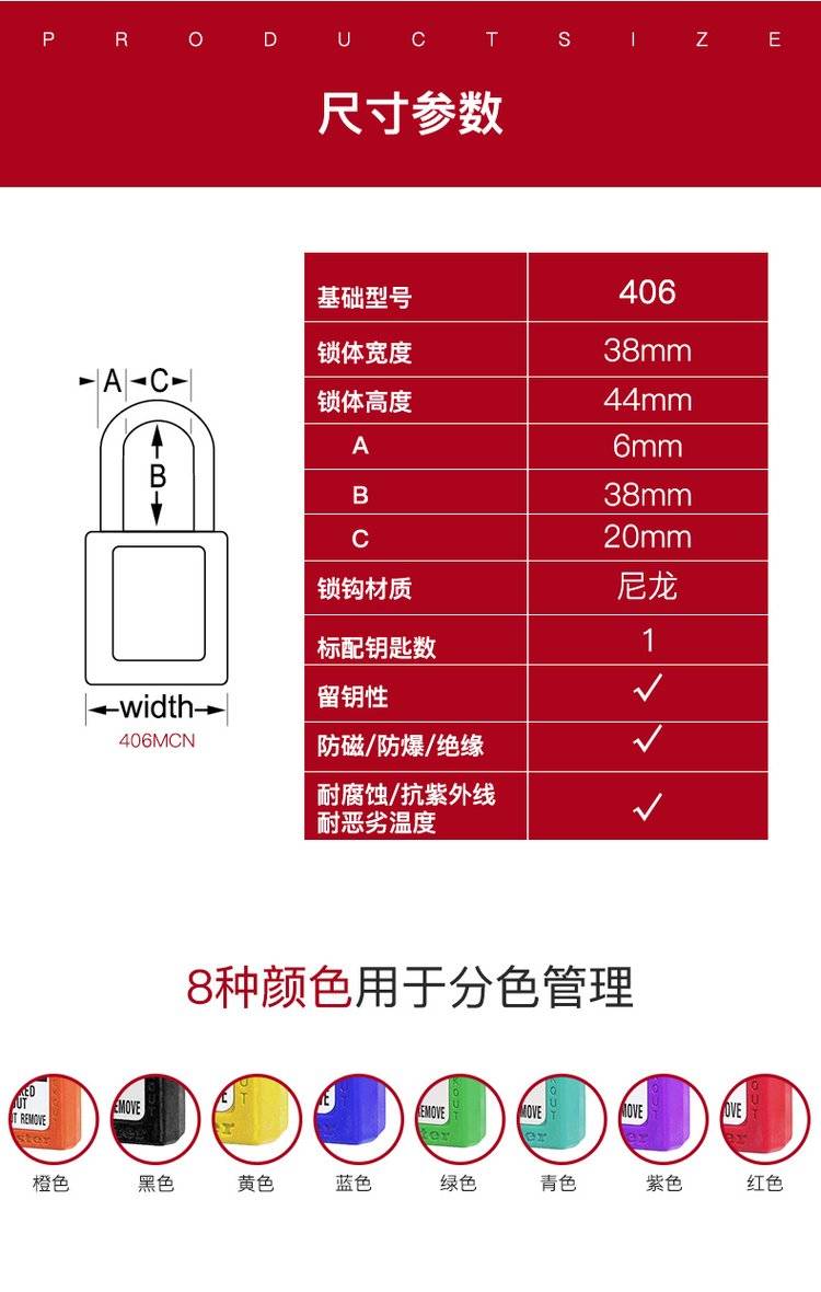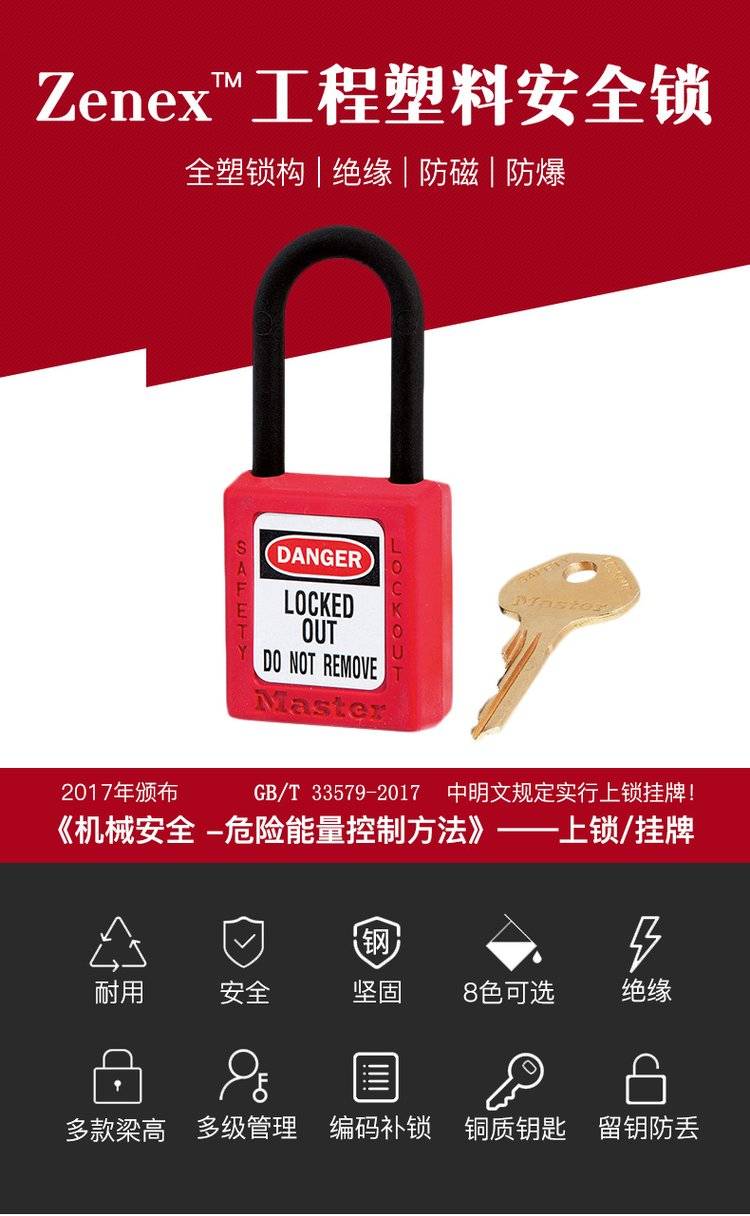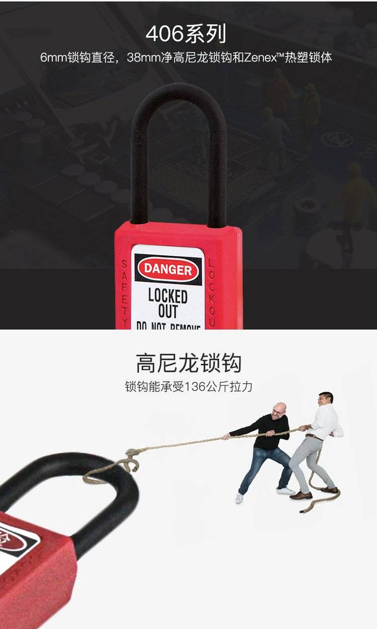 玛斯特安全挂锁个人锁绝缘尼龙406MCN 多色 美国百年锁具品牌