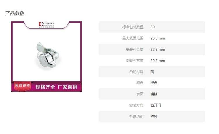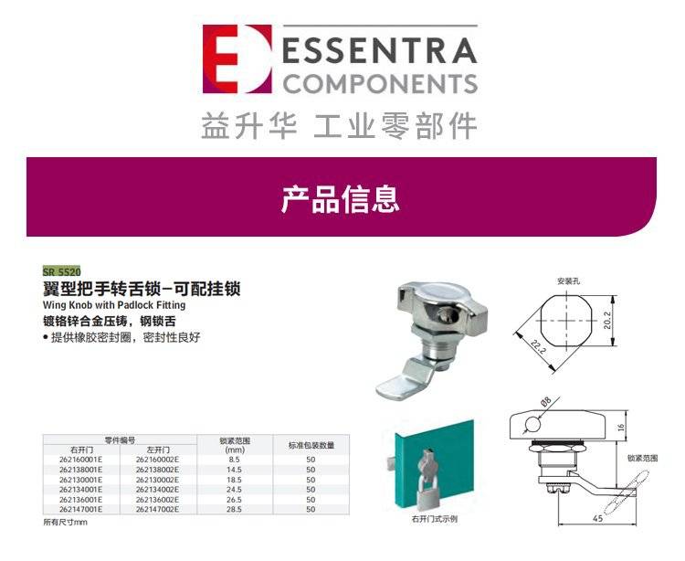 ESSENTRA益升华 柜门锁钢锁舌 SR 5520翼型把手转舌锁-可配挂锁