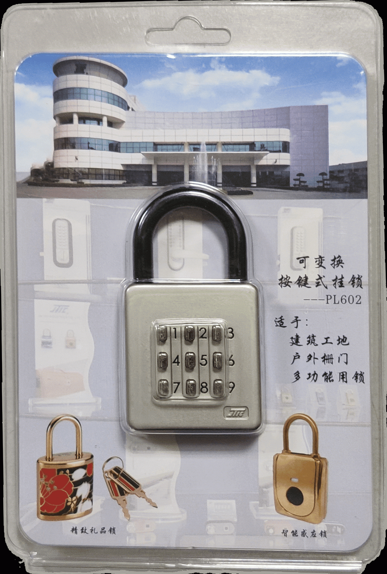 JTIC品牌 可变换密码按键式 宿舍门户外铁栅门用防水挂锁PL0602