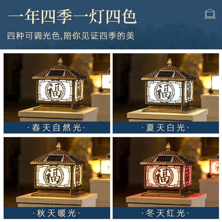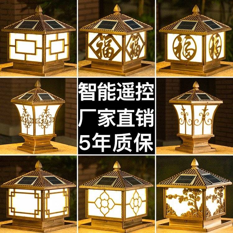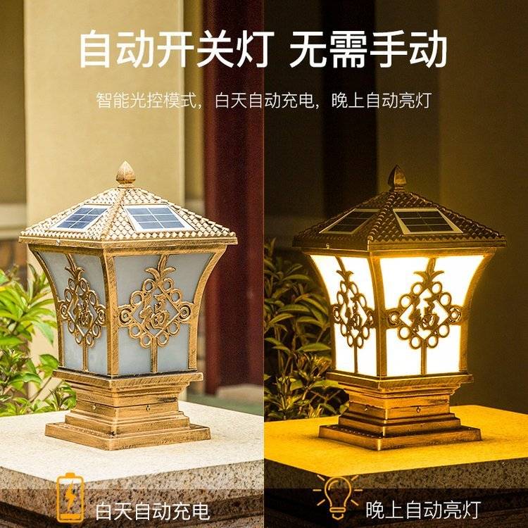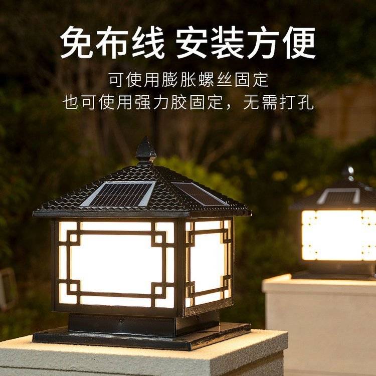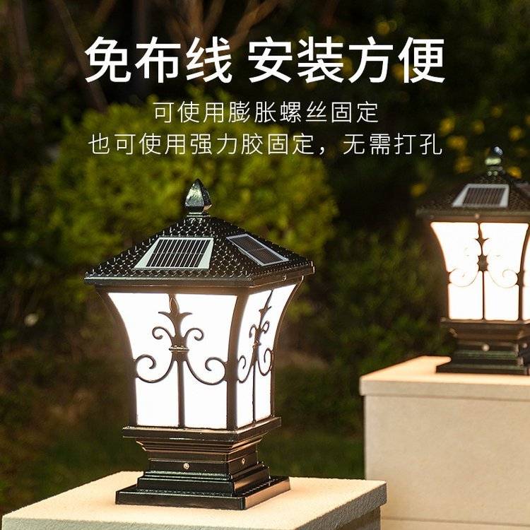 景观花园灯墙头灯 太阳能方形柱头灯户外别墅庭院门柱围墙灯