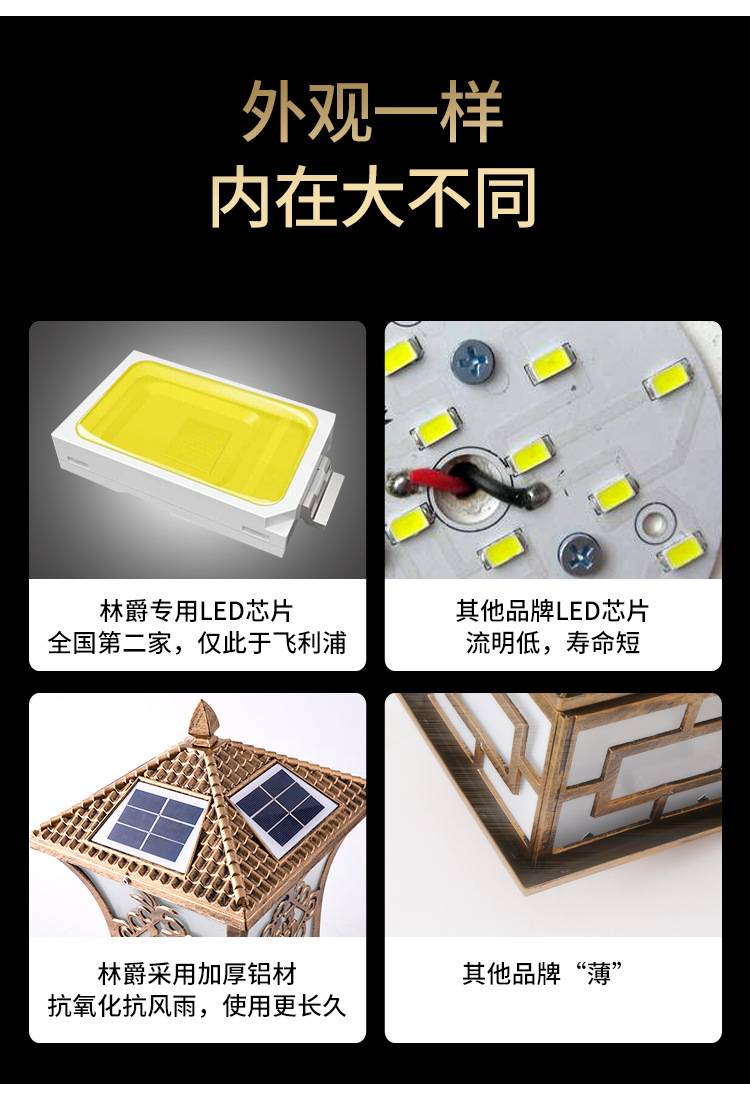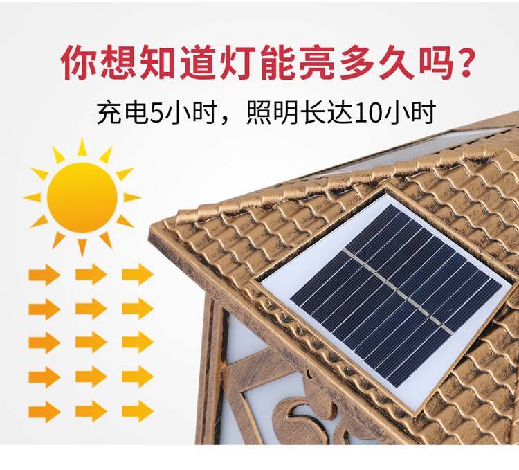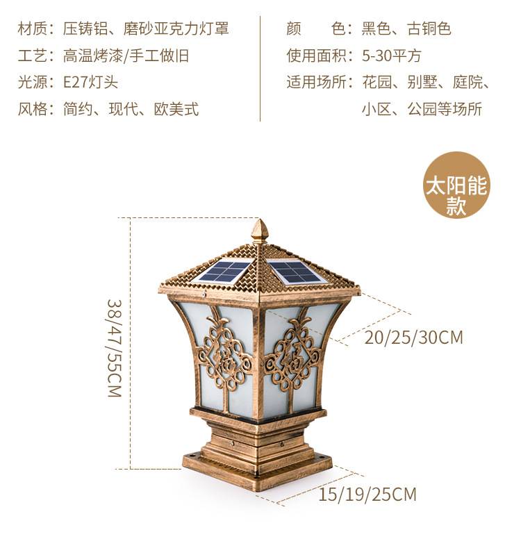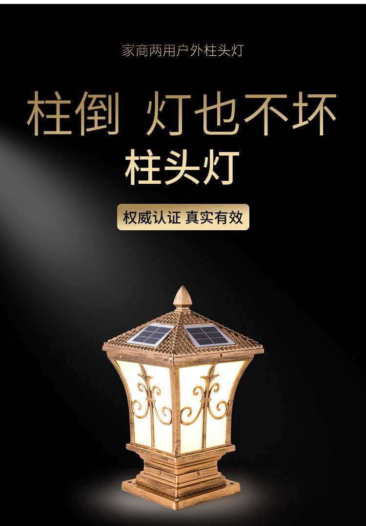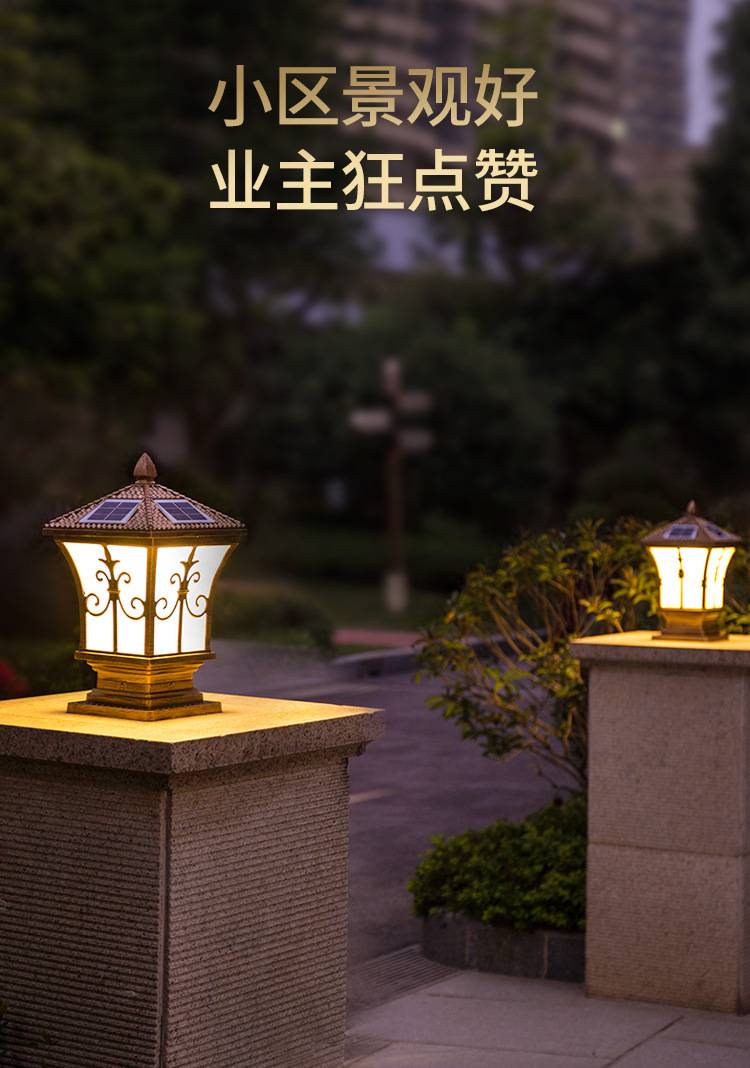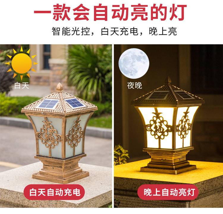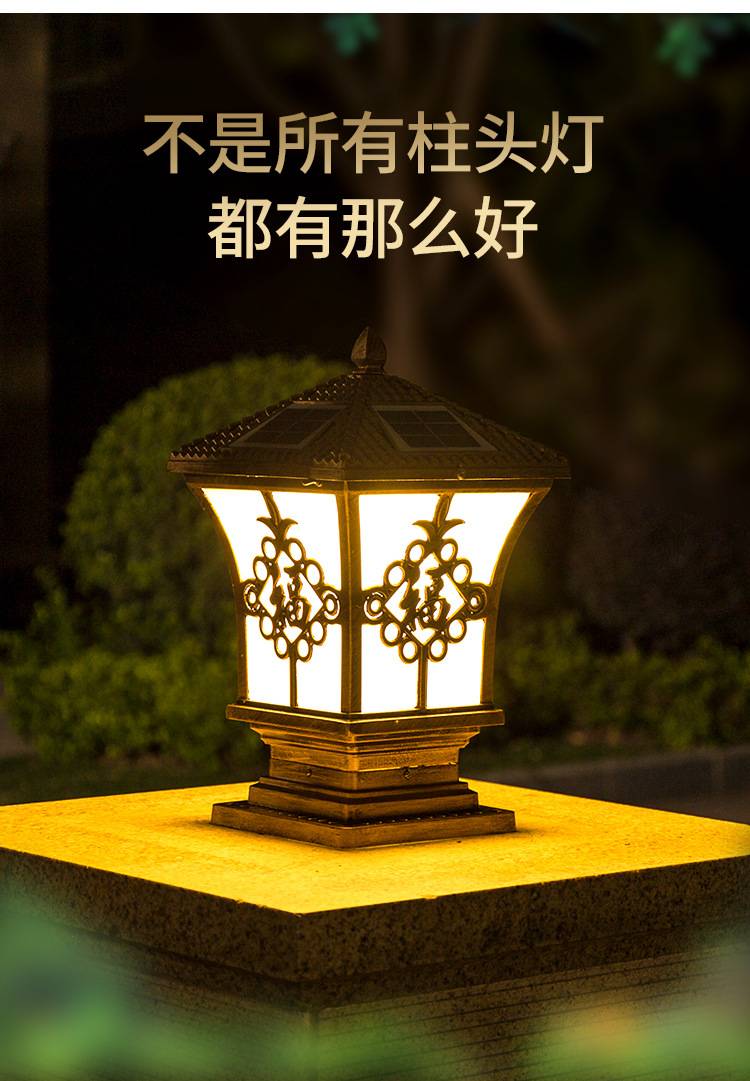 太阳能柱头灯庭院大门柱子门墩墙头灯户外防水别墅花园围墙顶灯