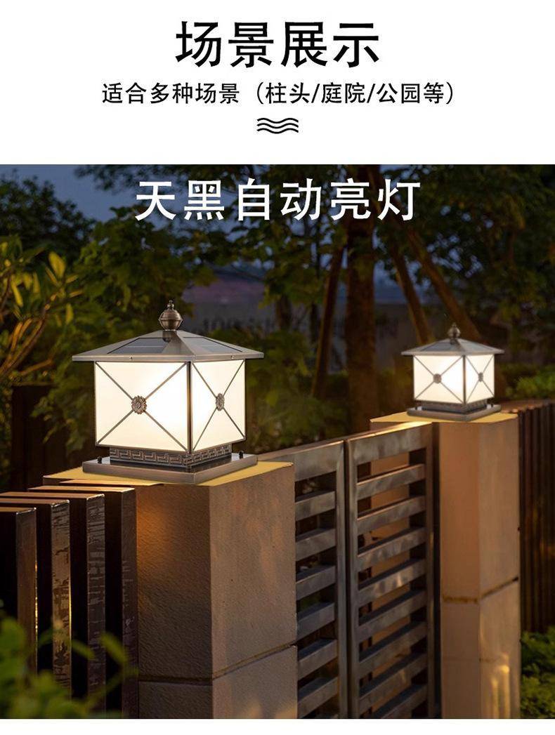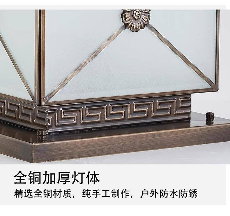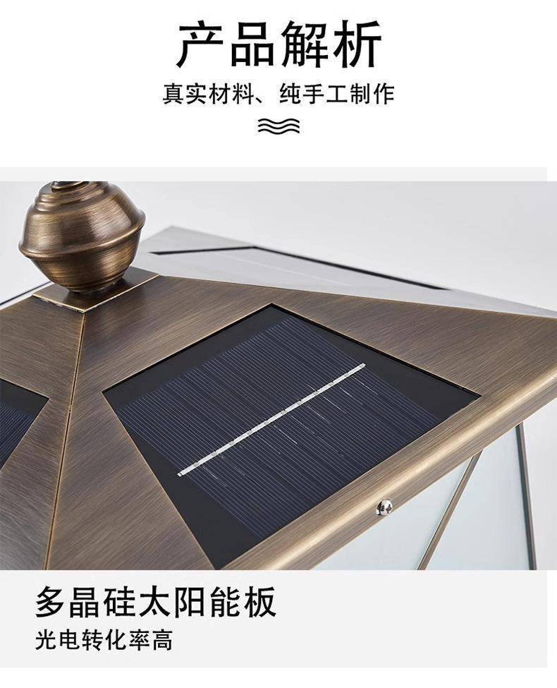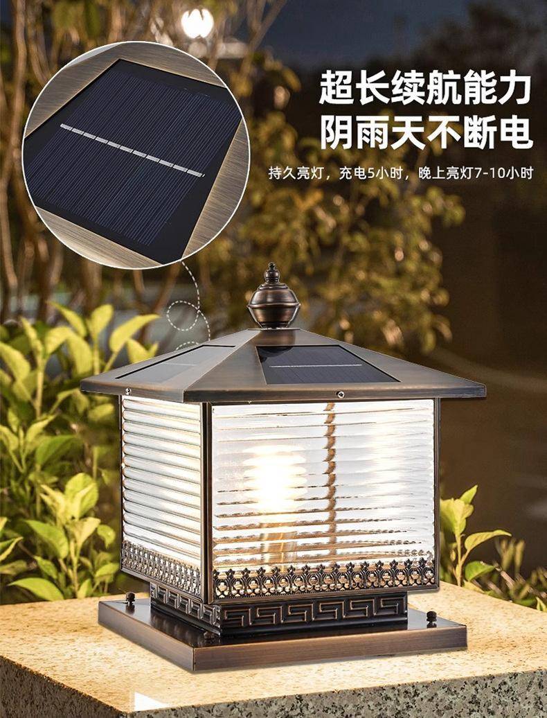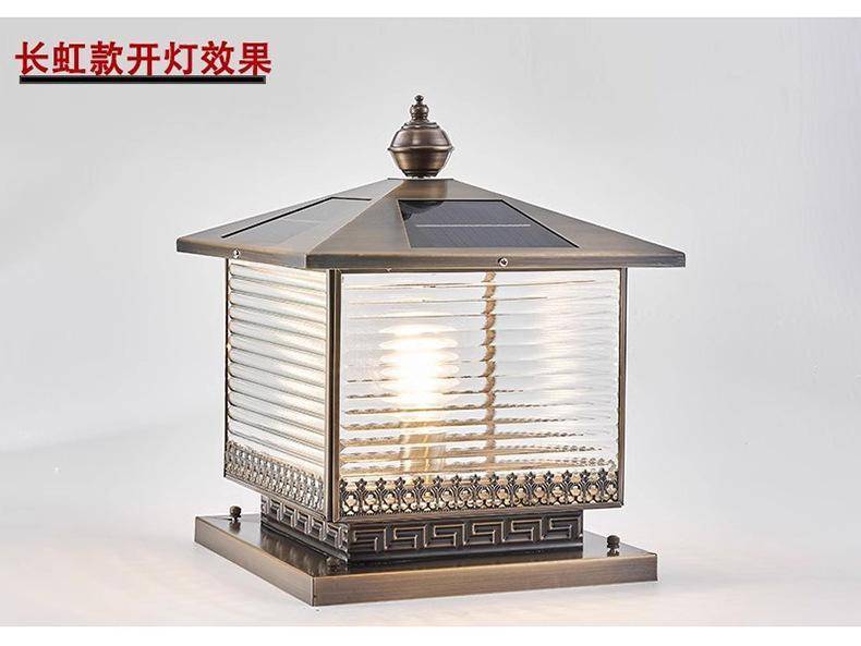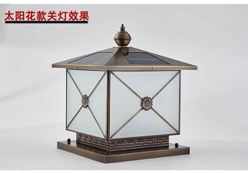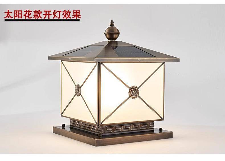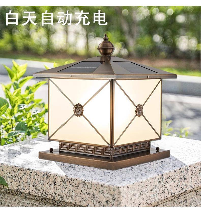 户外全铜太阳能门柱灯防水别墅墙头灯简约现代花园围墙柱子灯