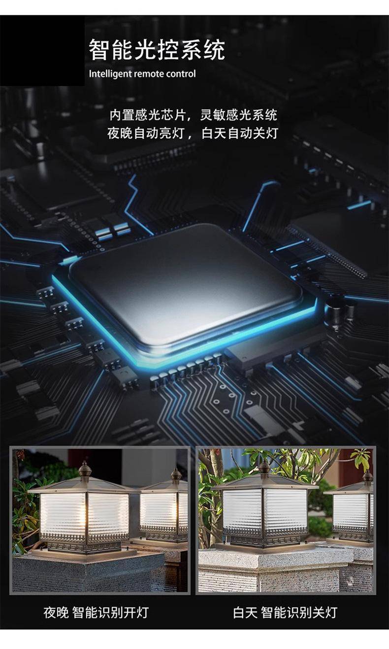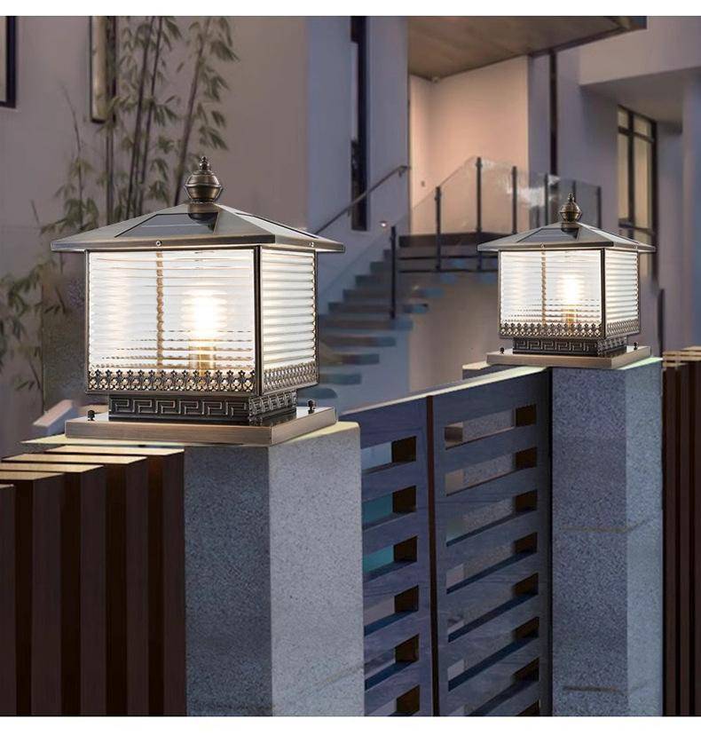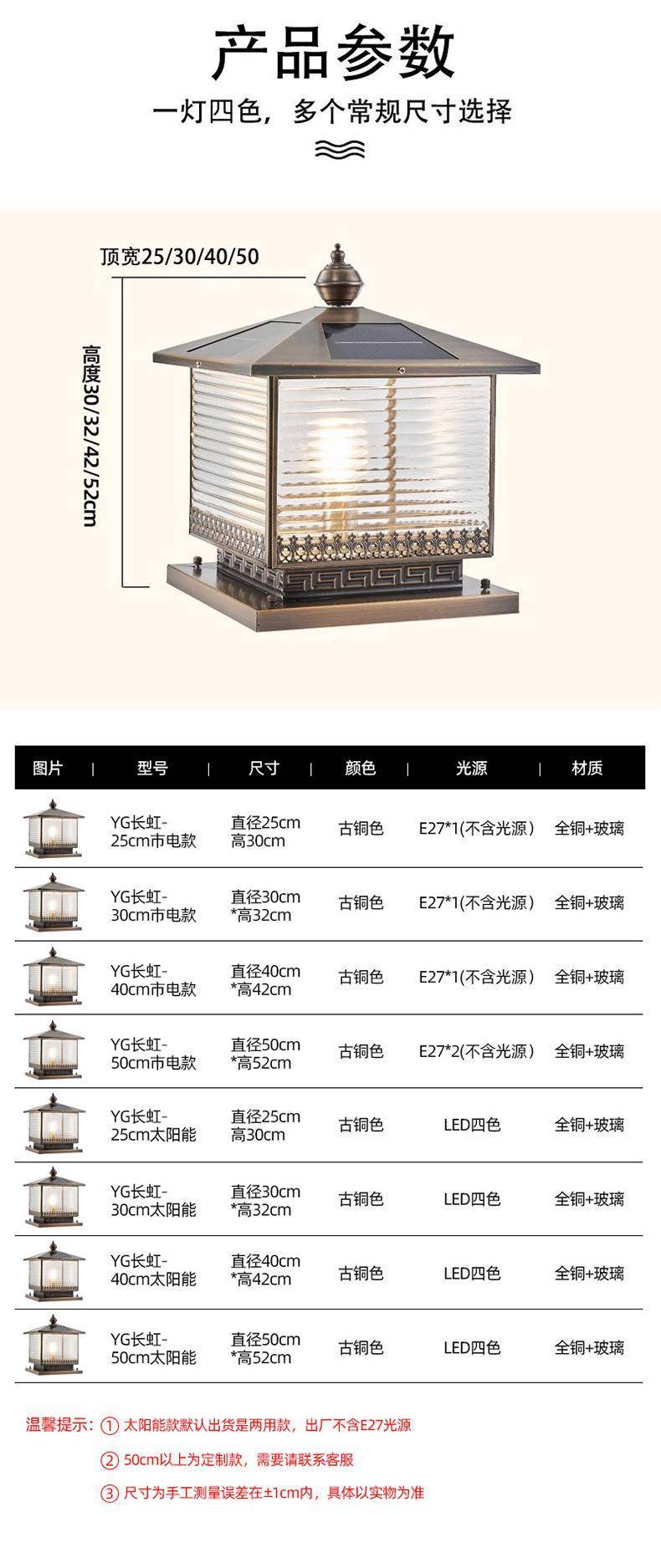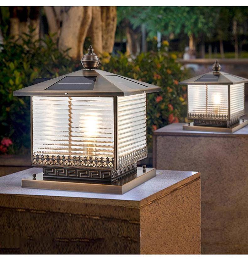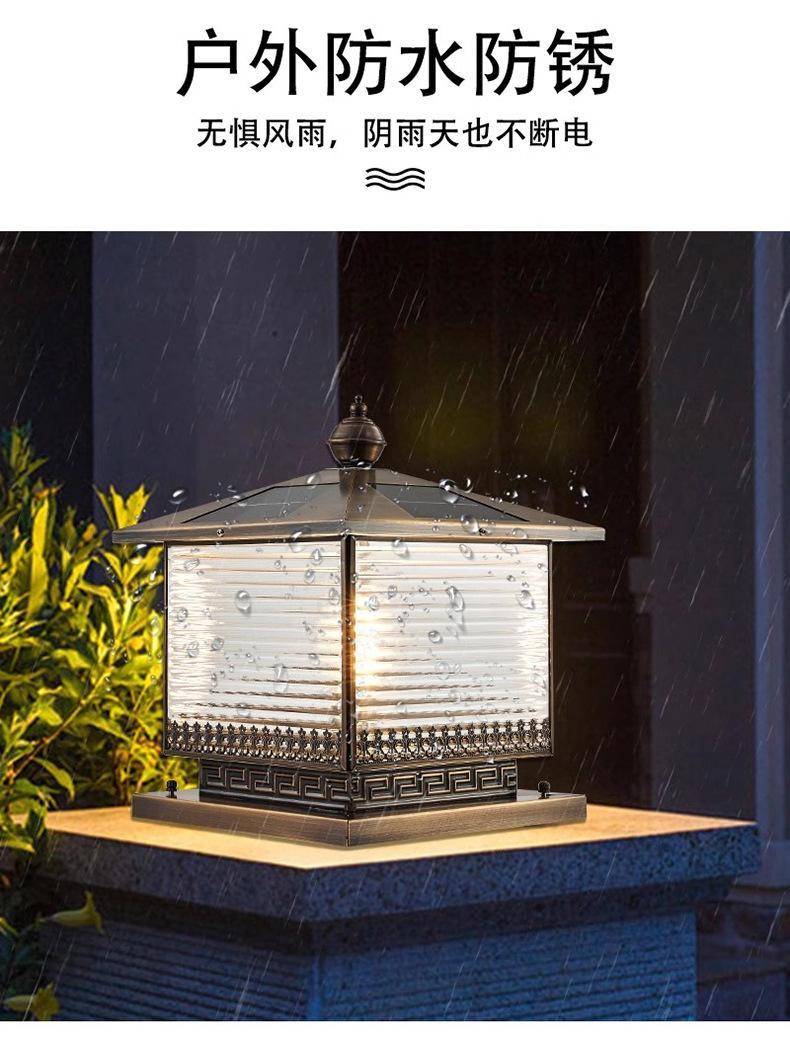 户外全铜太阳能门柱灯防水别墅墙头灯简约现代花园围墙柱子灯