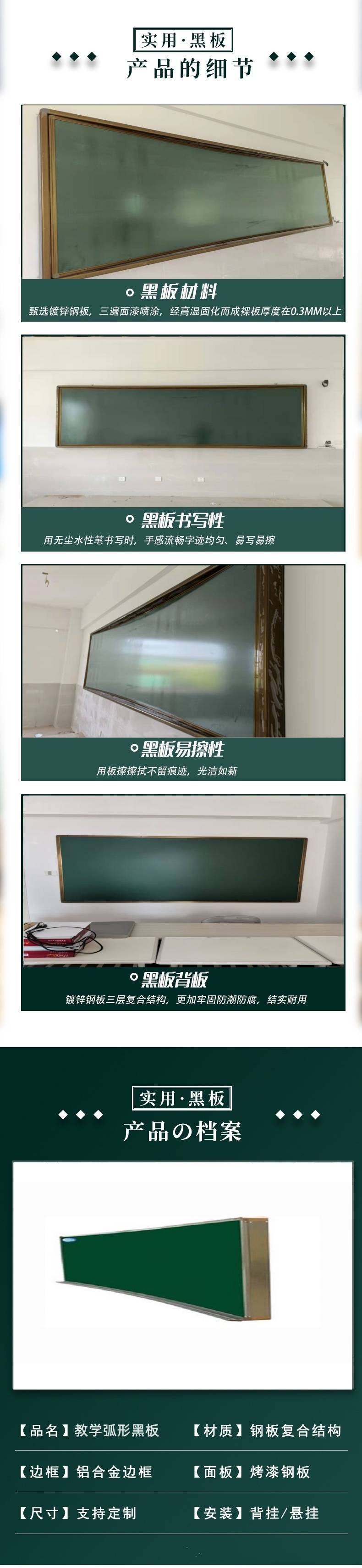 厂家定制尺寸教学专用弧形黑板壁挂式曲面磁性无尘大绿板
